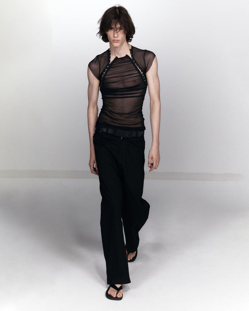 backless polo shirt - black