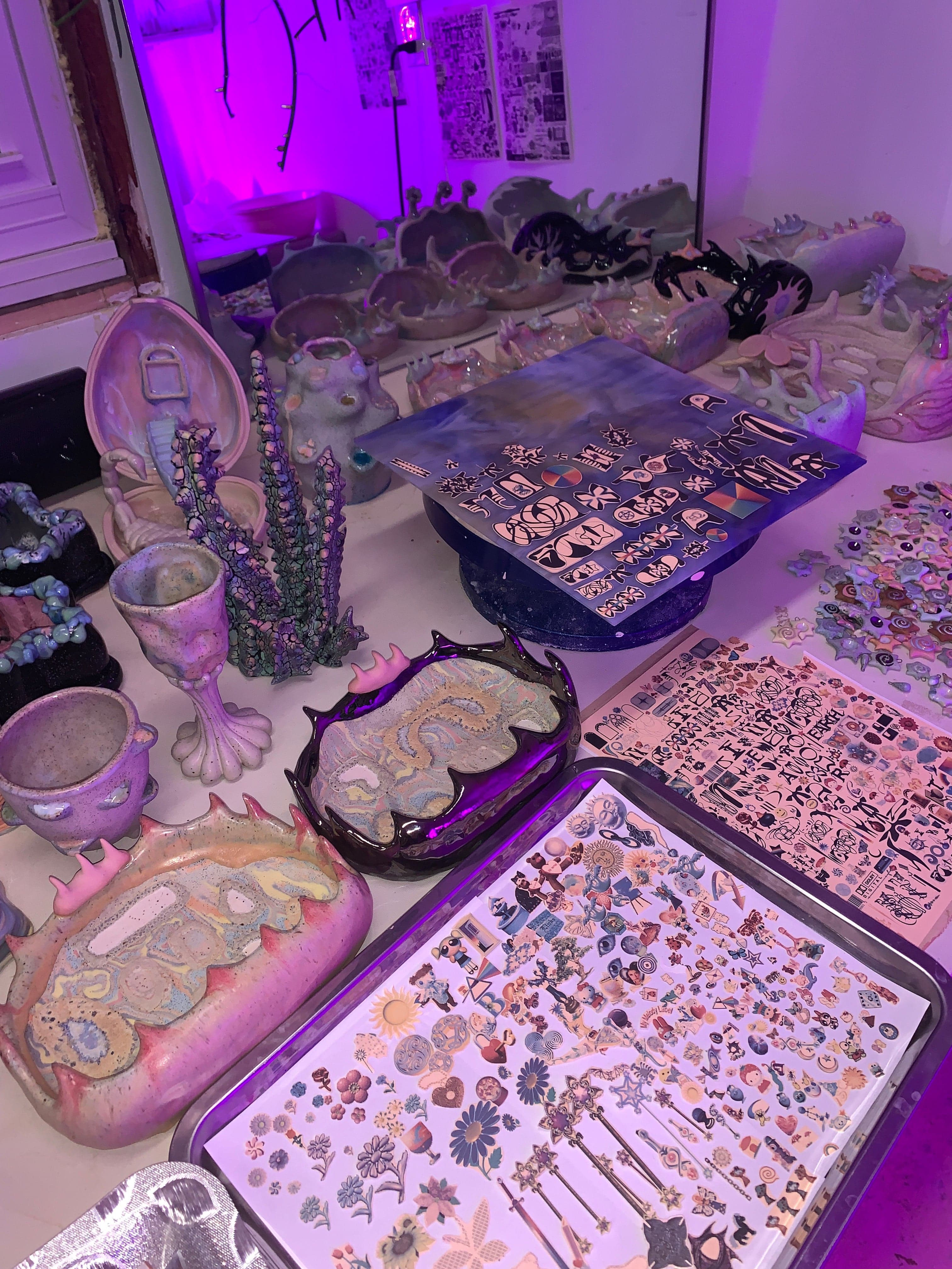 Inspired by digital technologies, meme culture and online communities, they aims to solidify the nature of the Internet through the permanency of ceramic form and glasswork. Creating both functional and sculptural work, their designs are inspired by materials, alchemical processes, and natural forms.