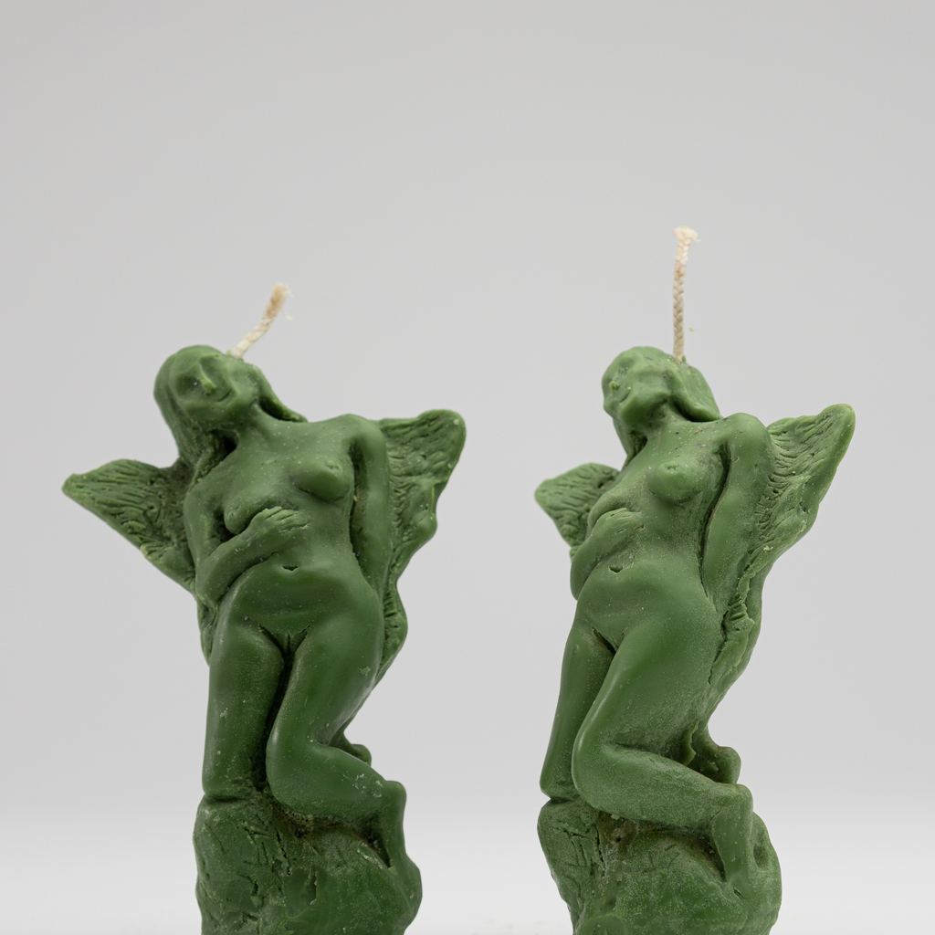 pair of angel candles - green