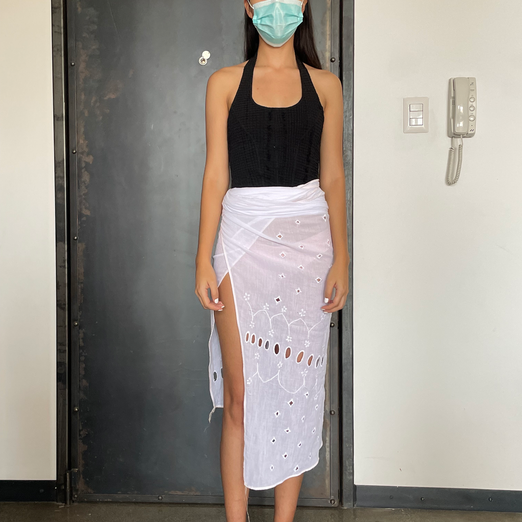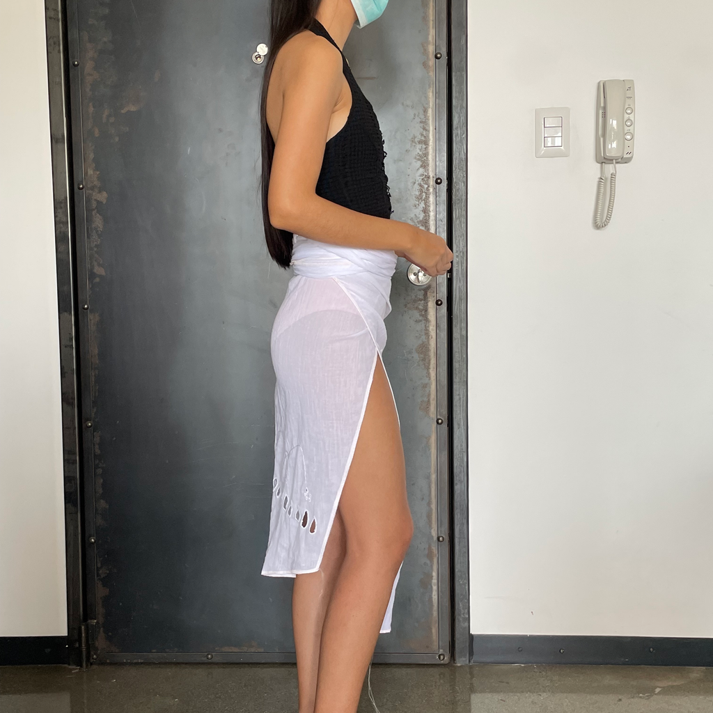 Embroidered Diagonal Skirt w/ Green Overlock by Luna Del Pinal