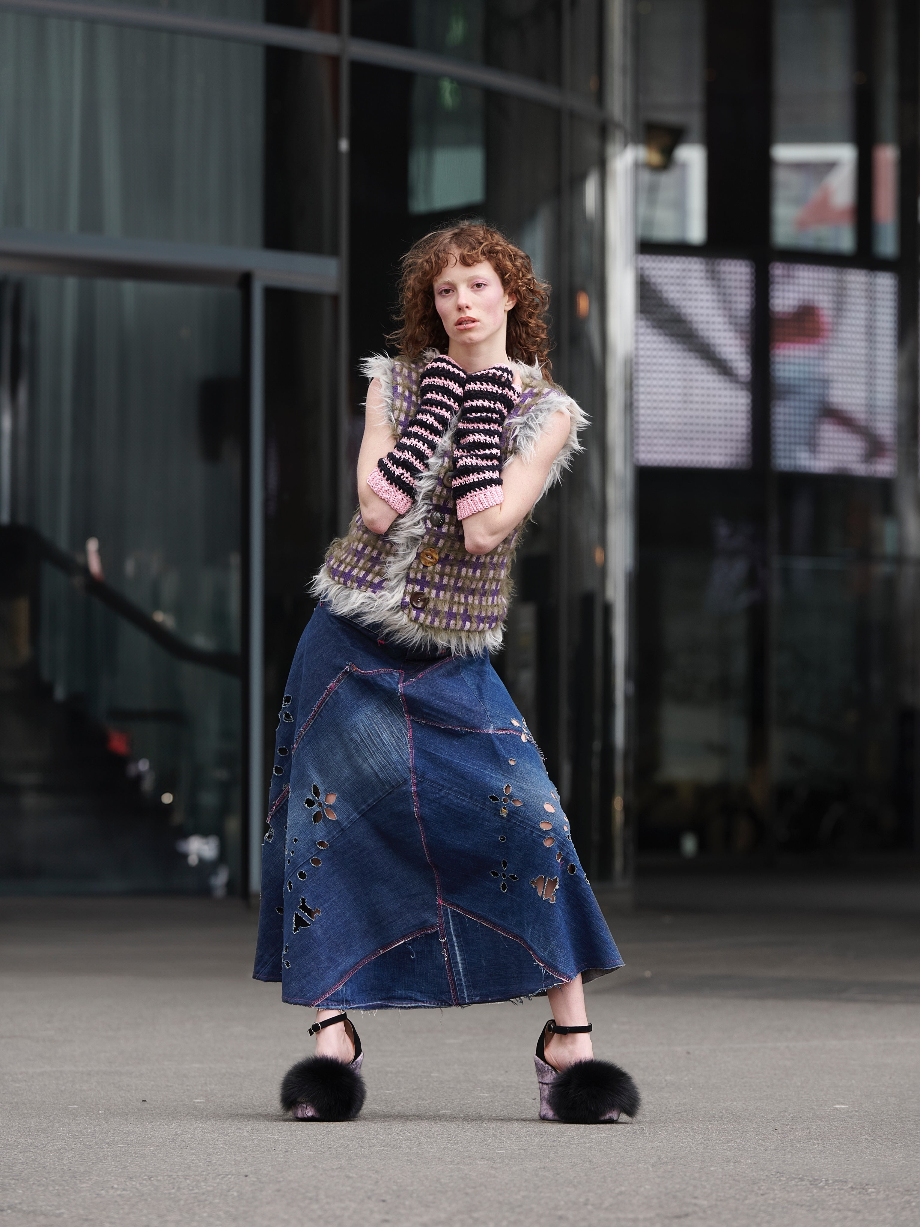 mini fluffy hand bag - red