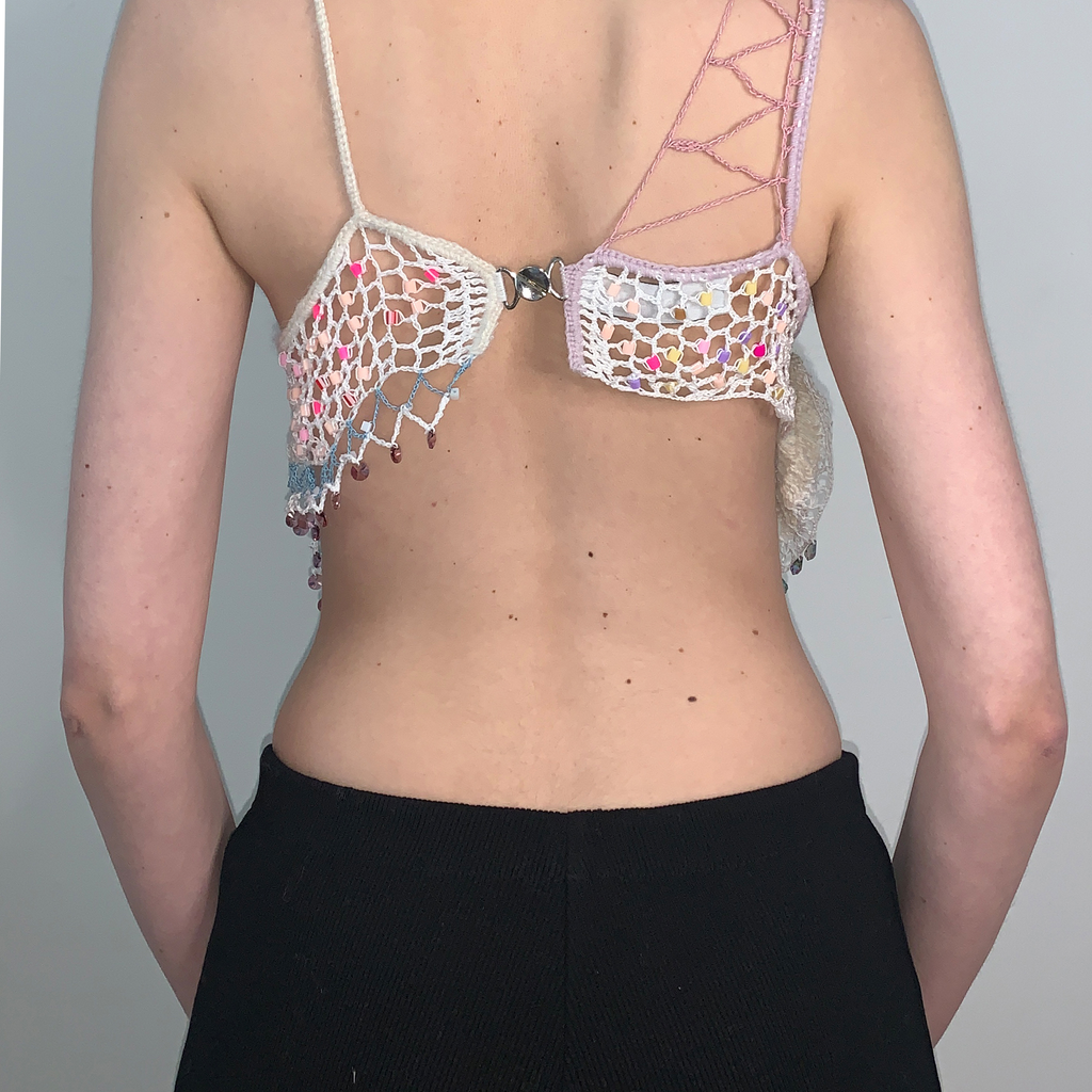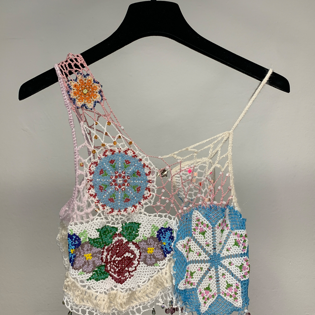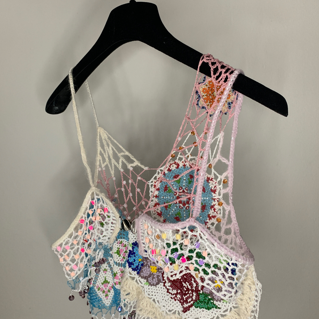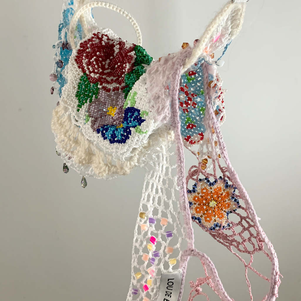 Lou de Bètoly is a French designer who works and lives in Berlin. Her main inspiration derives from chaos, surrealism, nostalgia, decadence, extravagance and oneirism. Adorned with embellishments, her intricately sensual crochet pieces reiterate her ‘wild at heart’ state of mind.