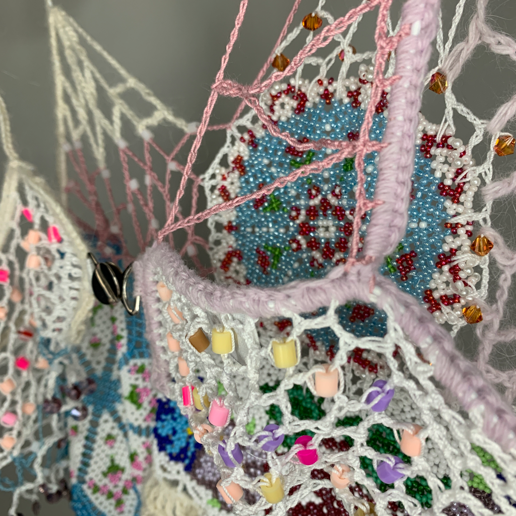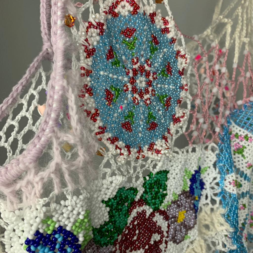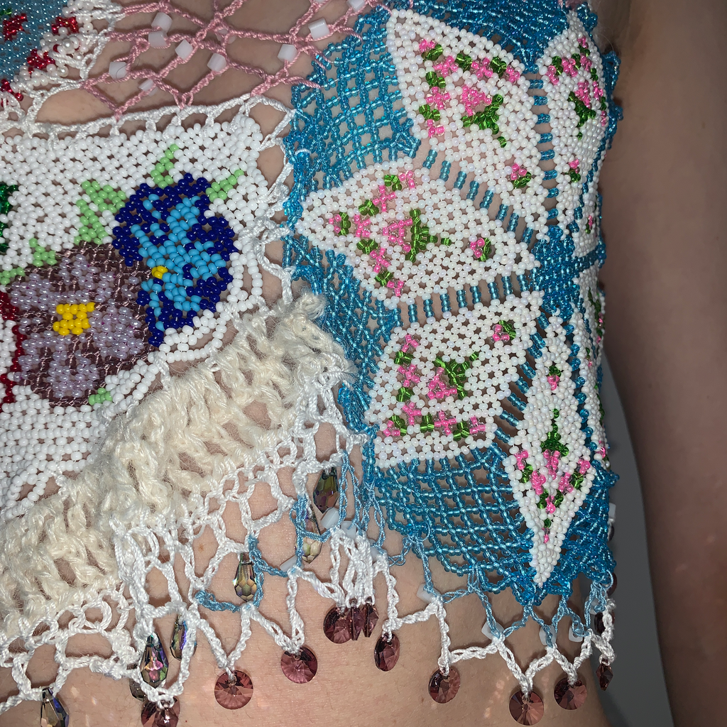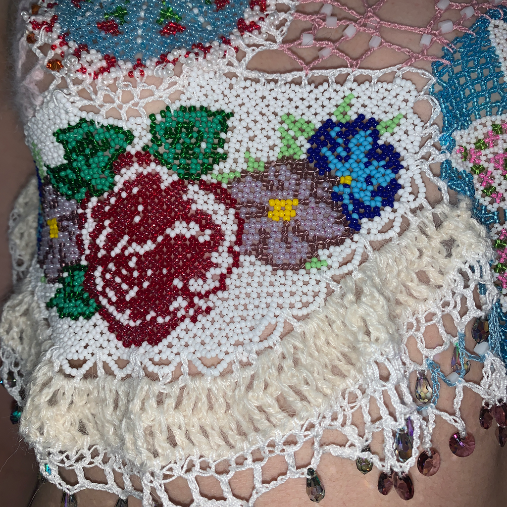 Lou de Bètoly is a French designer who works and lives in Berlin. Her main inspiration derives from chaos, surrealism, nostalgia, decadence, extravagance and oneirism. Adorned with embellishments, her intricately sensual crochet pieces reiterate her ‘wild at heart’ state of mind.