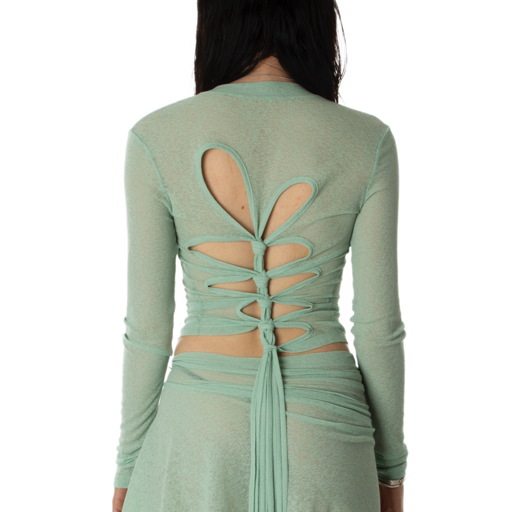 mesh knot reversible tee green