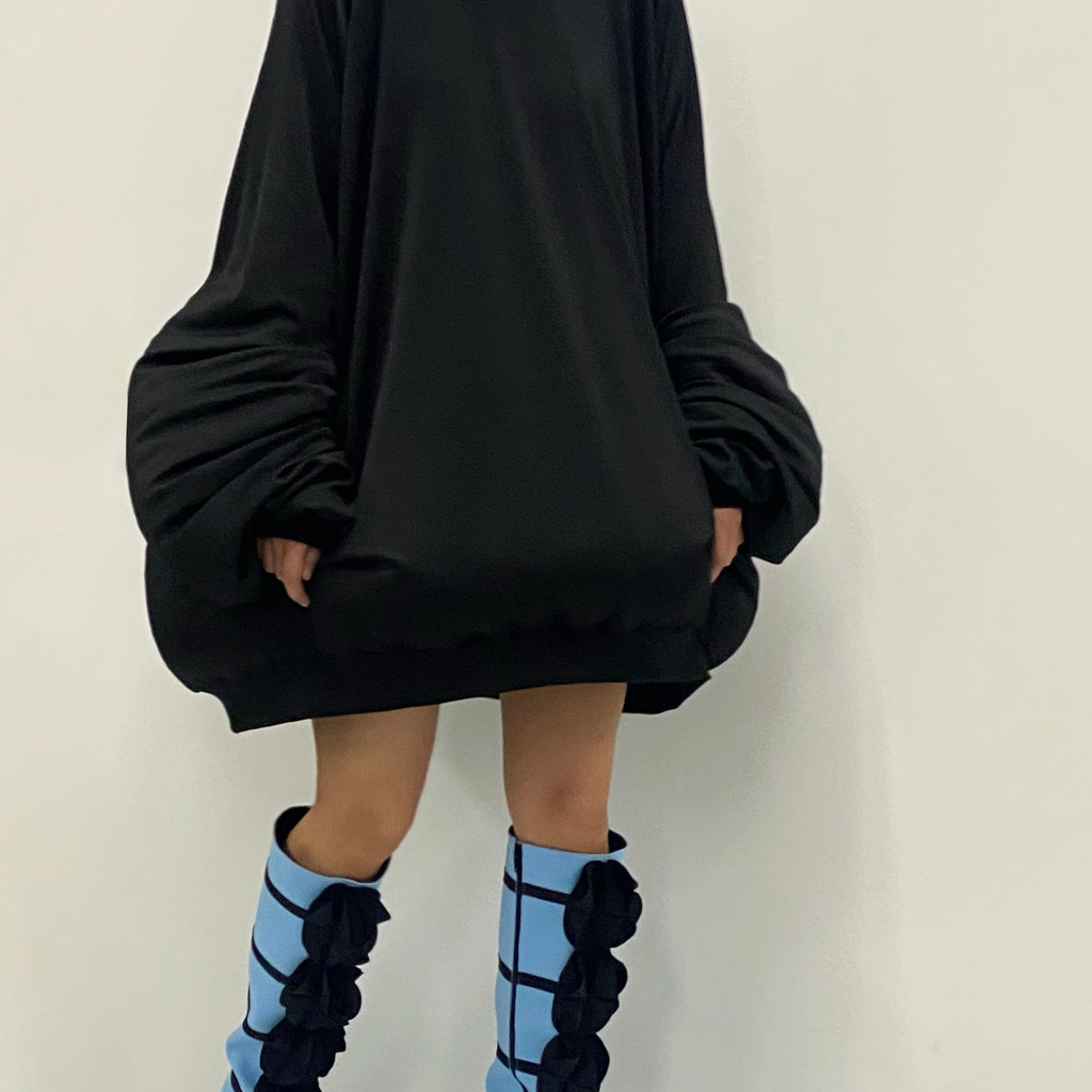 multi fairy gradient dot printed black sleeve dress