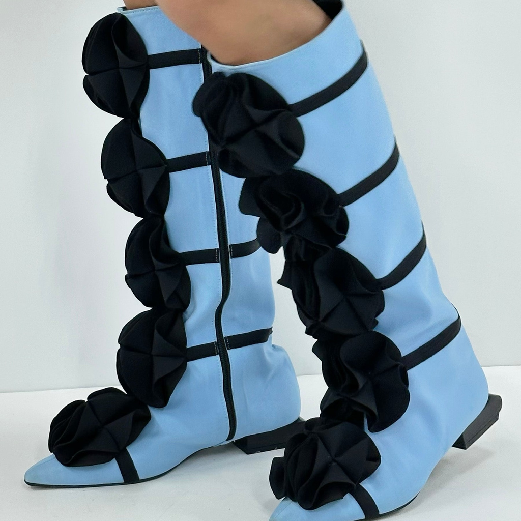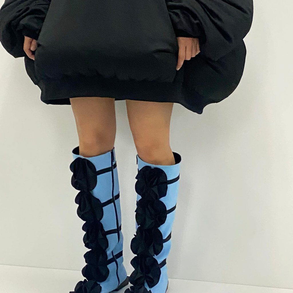 powder blue guko knee high neoprene boots