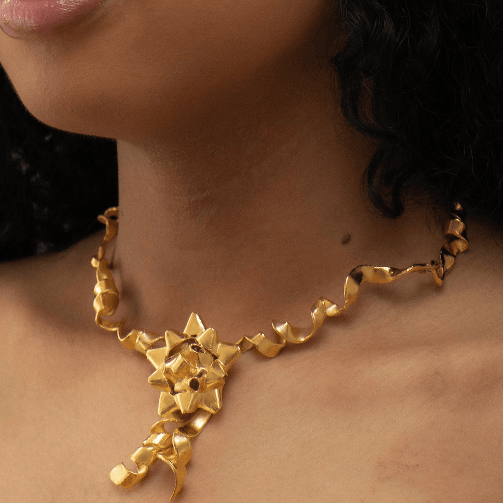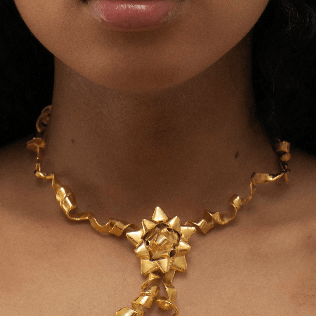 gold gift wrap necklace