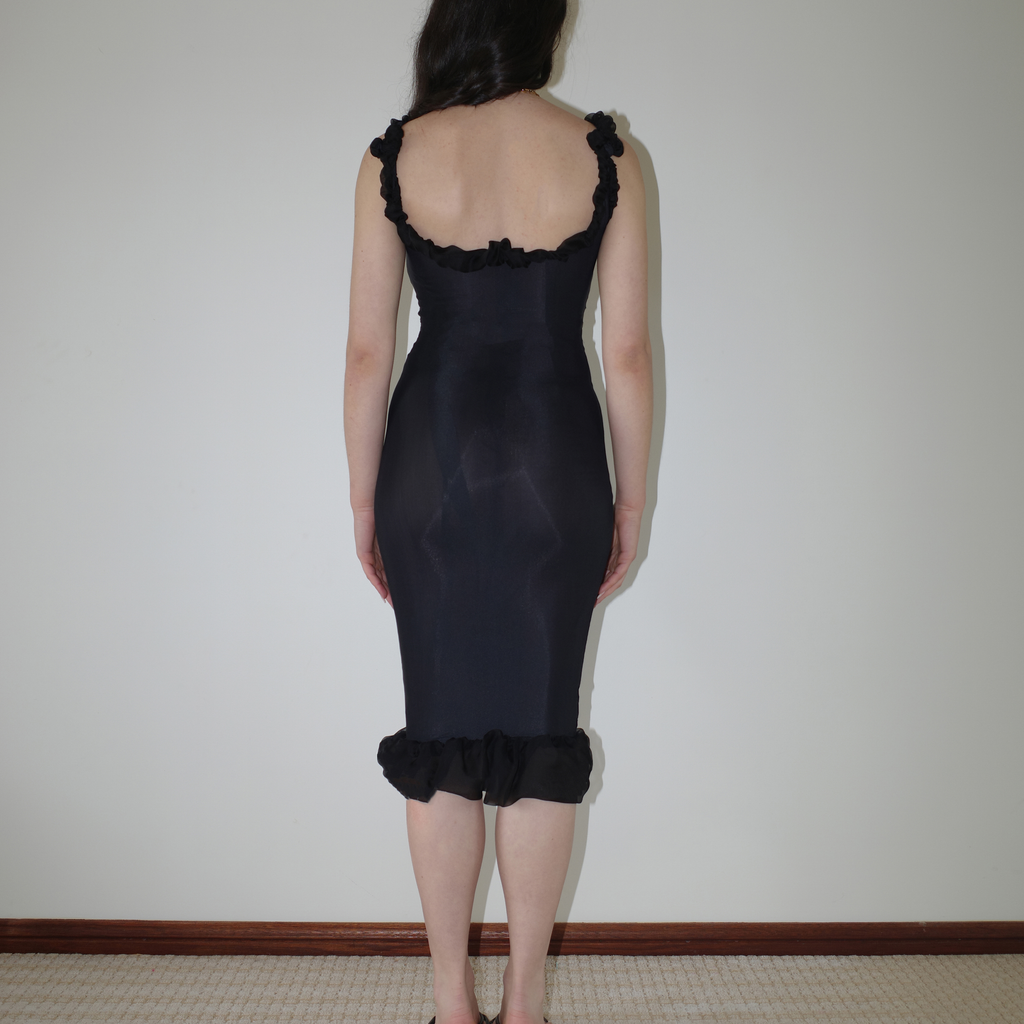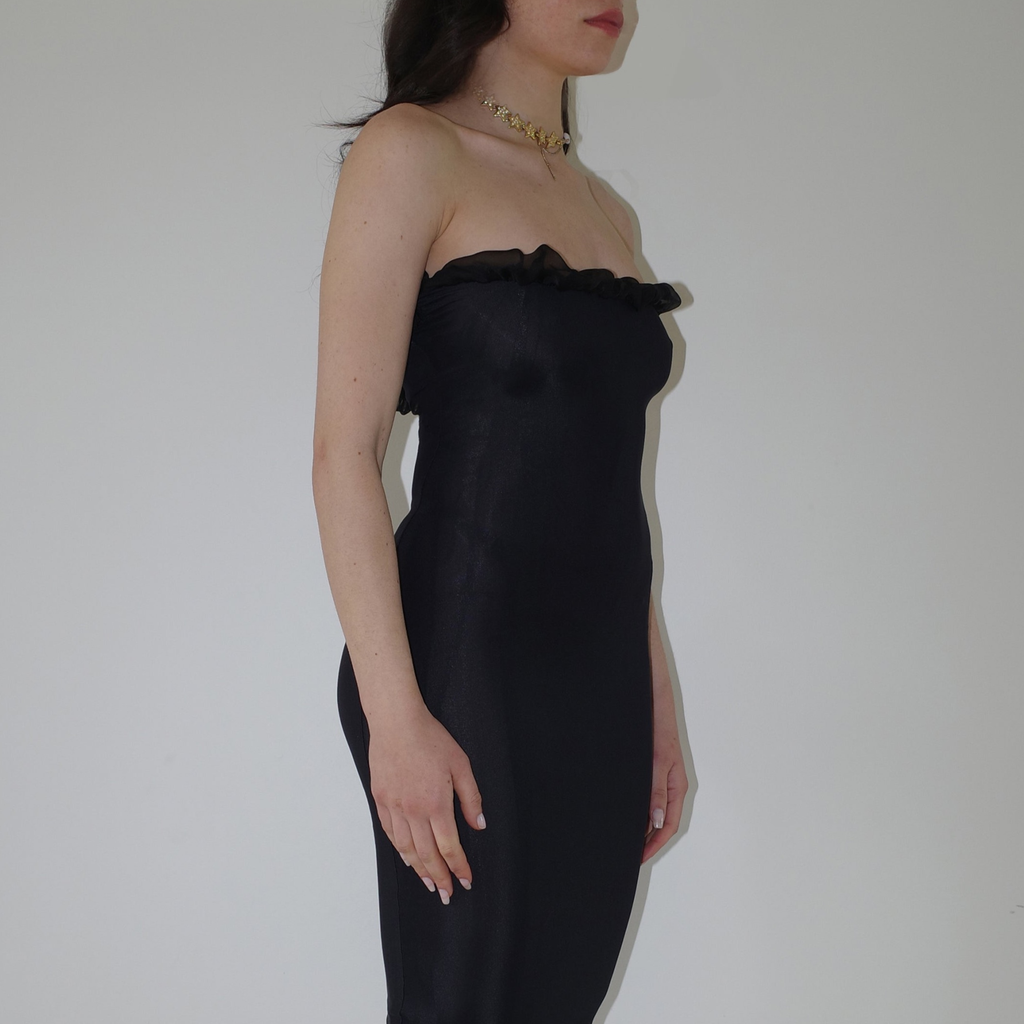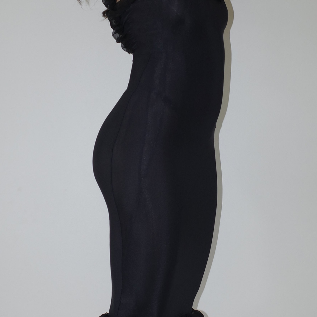 Ouse World’s cult favorite multi-functional tube dress that looks wet and feels like buter. Contours the body with technical italian jersey that stretches and contracts for extreme comfort and size flexibility. Dramatic ruching on the neckline & hem frames the bust and curves of the body.