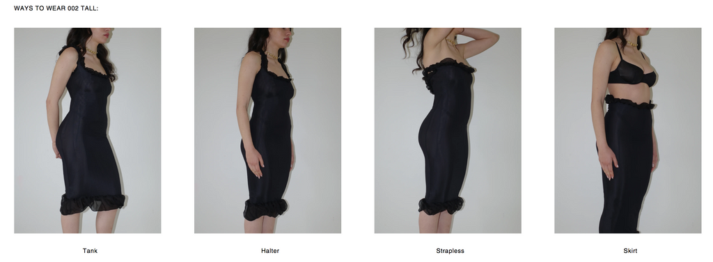 Wear it as a dress with tank, halter or strapless variations. Wear it as a skirt or turn it inside out for extreme volume.
