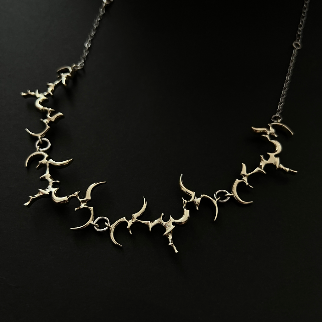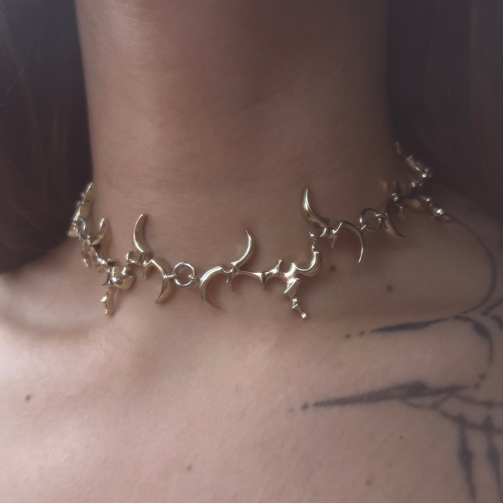 Kt Ferris’ New York City-based label, This Shit Blinks, merges handcrafted ancient symbolism with liquid futurism. Drawing inspiration from centuries-old symbols and motifs, she infuses these ancient elements and techniques in new ways, creating an enchanting fusion of past and current. Each piece is hand-crafted by Kt.