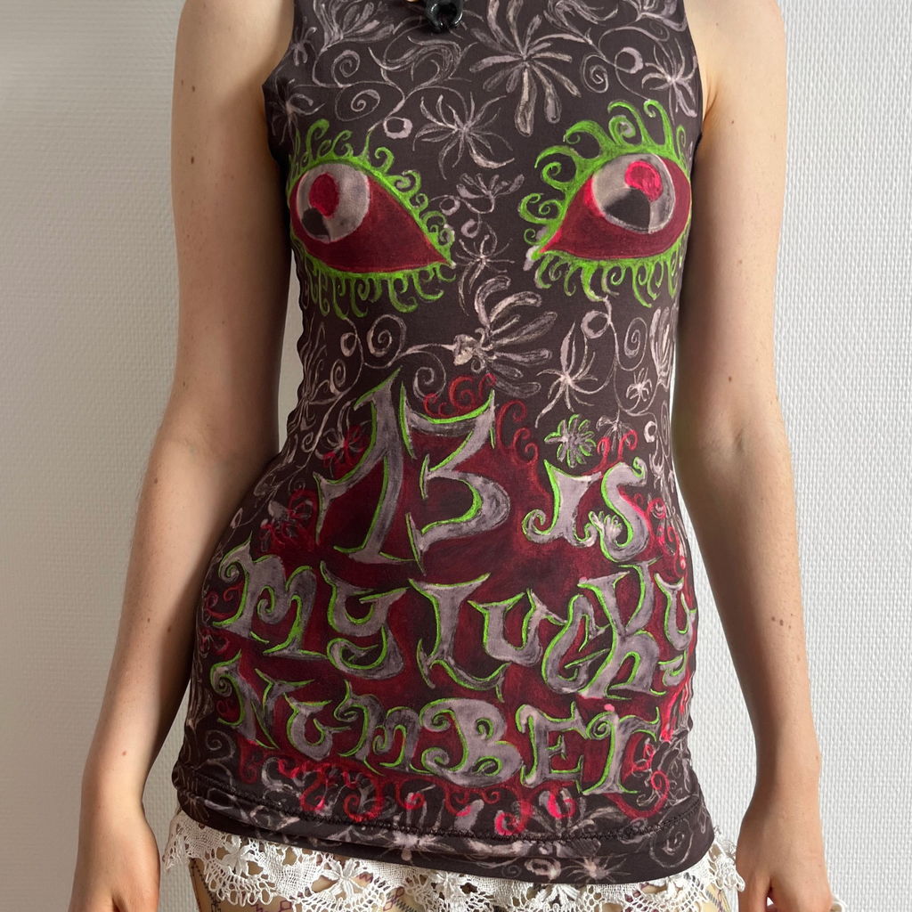 Hand painted with bleach and textile paint