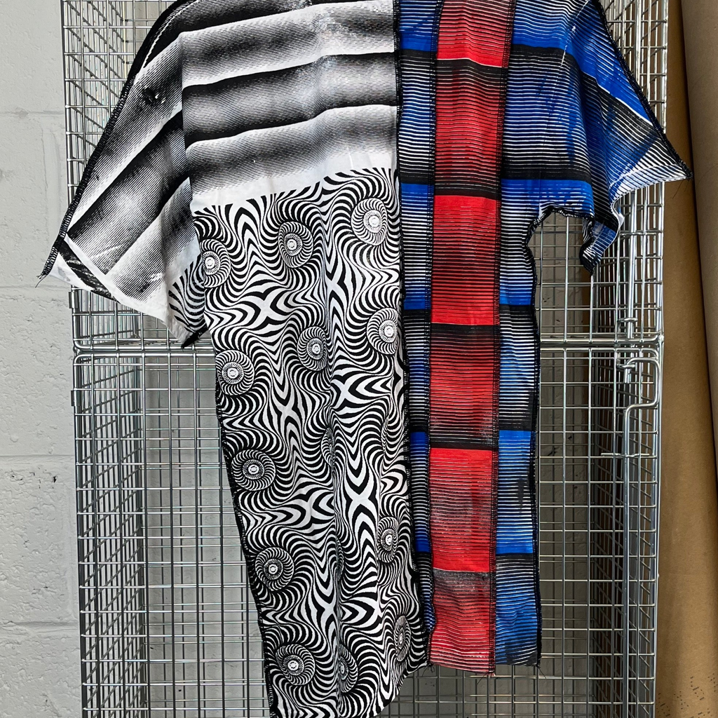 Recently Graduated from Central Saint Martins, Pip Paz-Howlett is in the early stage of setting up his brand, creating one of a kind pieces through upcycling, repurposing and silk screen printing/fabric manipulation. Pip's work is a saturated and sexual exploration of menswear referencing queer music and culture, vintage gay porn and psychedelic induced hedonism.