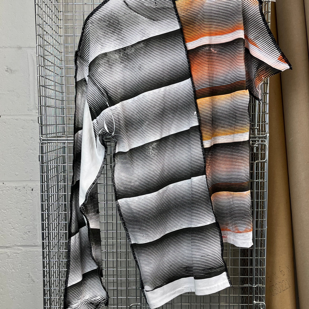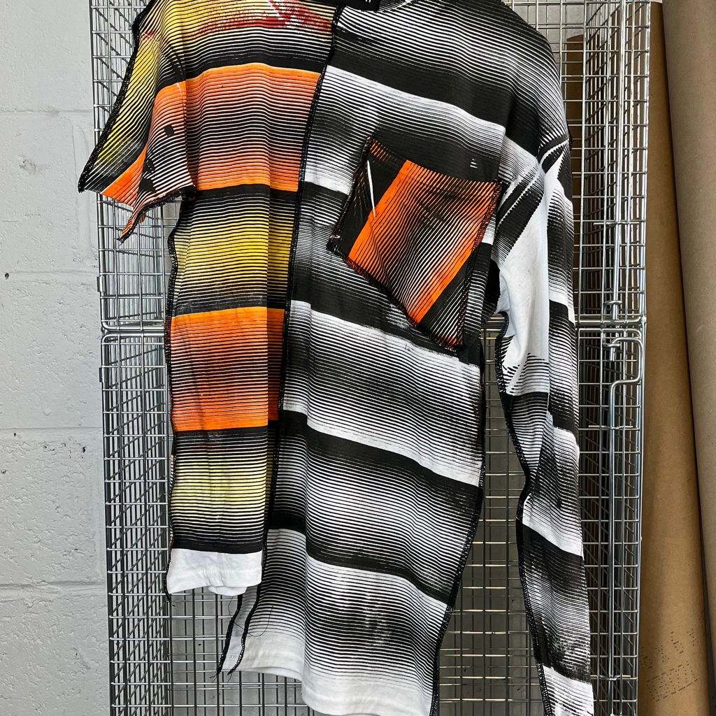 Recently Graduated from Central Saint Martins, Pip Paz-Howlett is in the early stage of setting up his brand, creating one of a kind pieces through upcycling, repurposing and silk screen printing/fabric manipulation. Pip's work is a saturated and sexual exploration of menswear referencing queer music and culture, vintage gay porn and psychedelic induced hedonism.