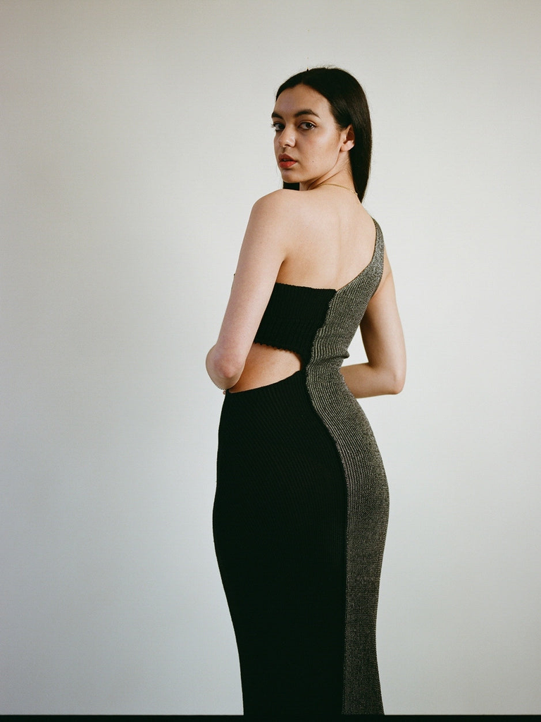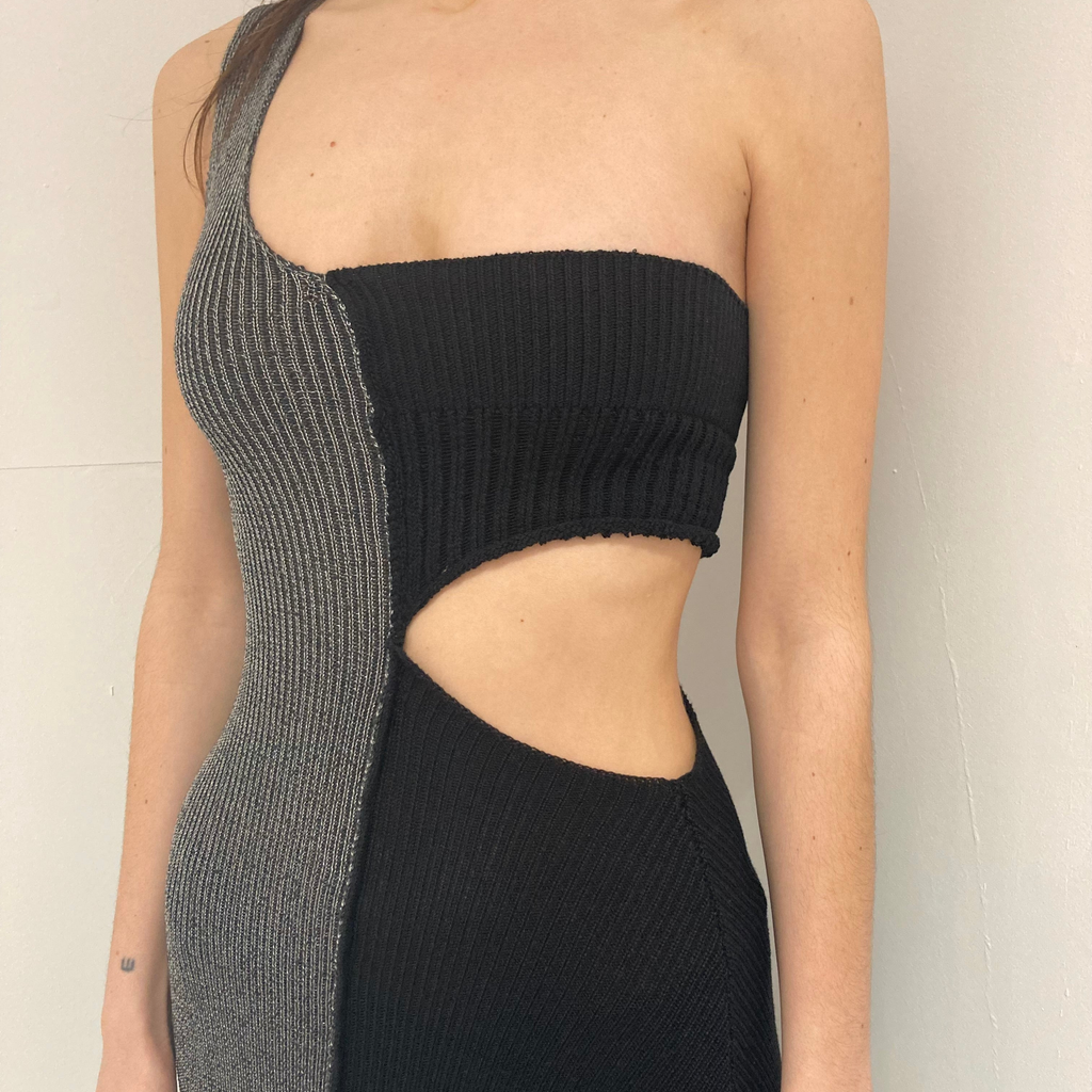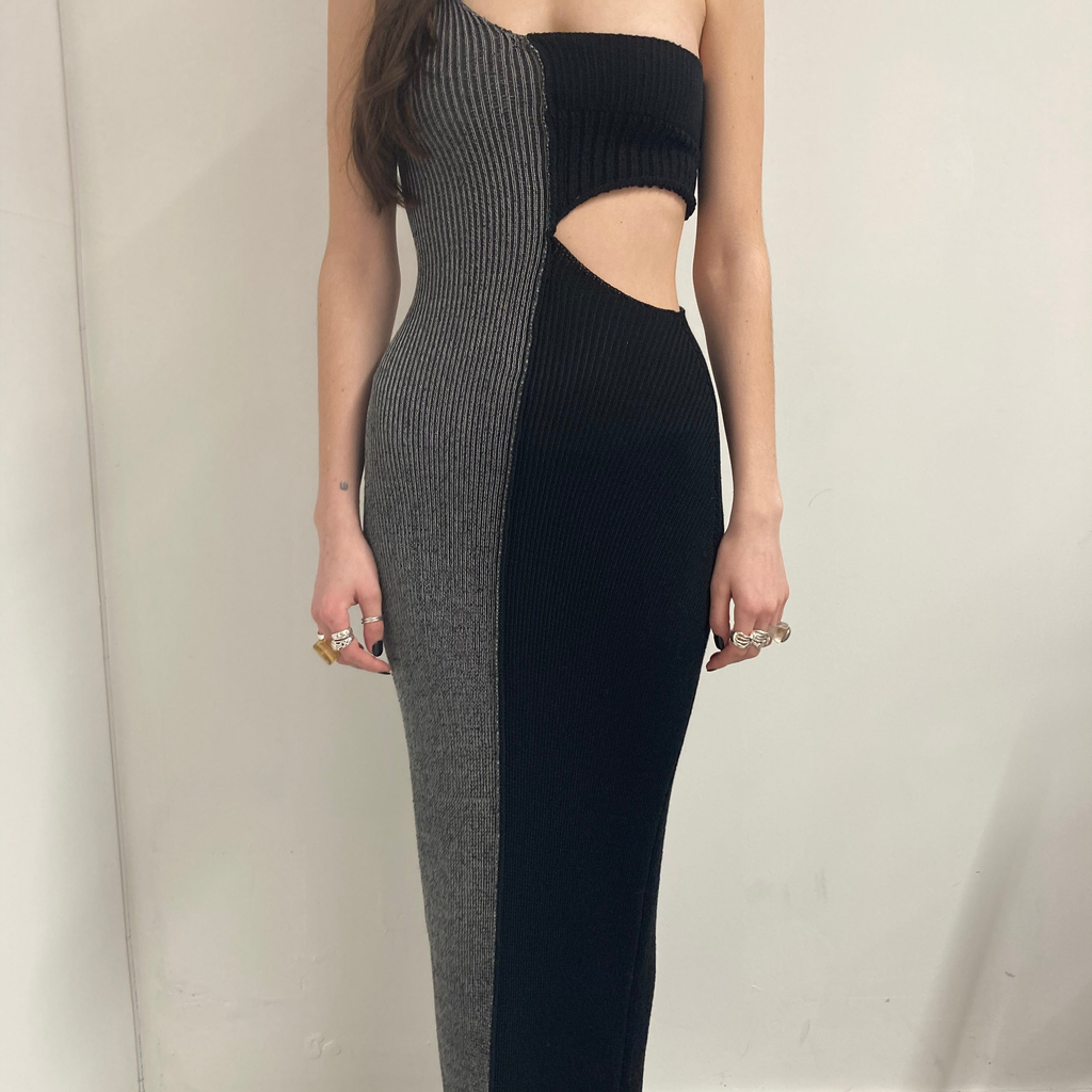 Long-ribbed knit dress with cut-out detail. 30-degree wash or gentle hand wash. Size S