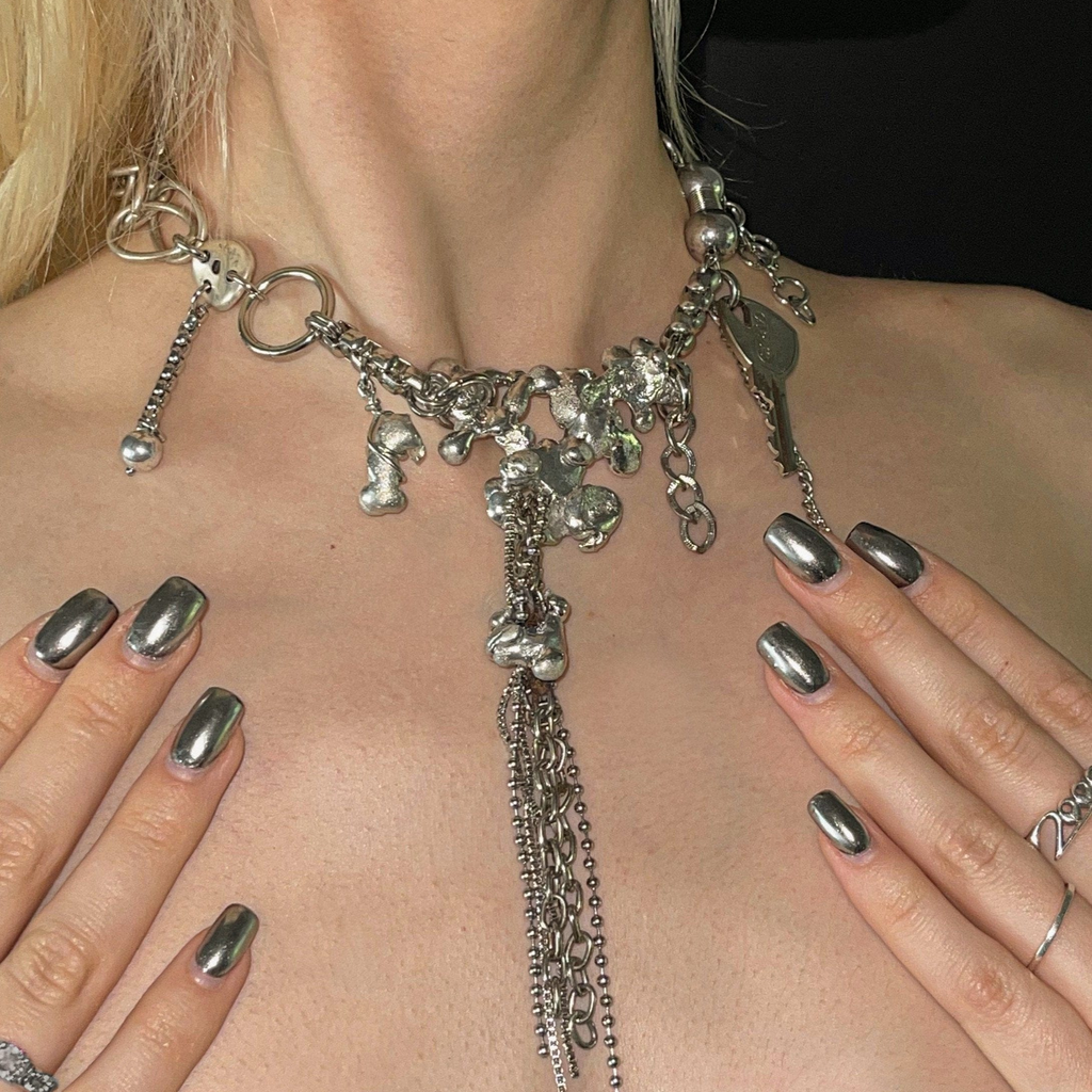 Echo Shawna pieces are the visualisation of the restless mind of designer Deborah Bloemen. Created in Antwerp with 80% recycled material, each element of Echo Shawna pieces is carefully collected based on its aesthetic value. The pieces are born not out of a design, but out of the inspiration of the collected objects. The brand is a tribute to Deborah’s parents who were both blacksmiths in the 70s. Every piece is unique, handmade and created with a lot of love.