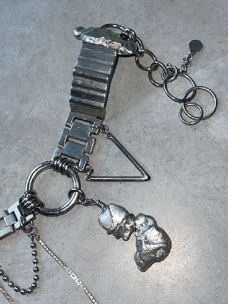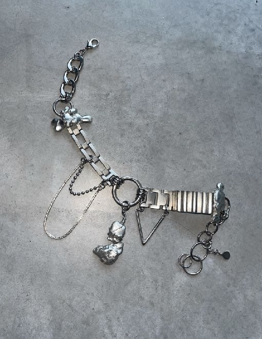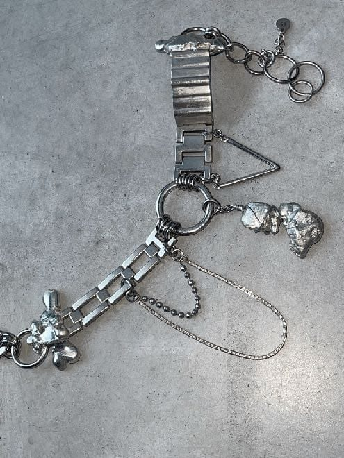 Echo Shawna pieces are the visualisation of the restless mind of designer Deborah Bloemen. Created in Antwerp with 80% recycled material, each element of Echo Shawna pieces is carefully collected based on its aesthetic value. The pieces are born not out of a design, but out of the inspiration of the collected objects. The brand is a tribute to Deborah’s parents who were both blacksmiths in the 70s. Every piece is unique, handmade and created with a lot of love.