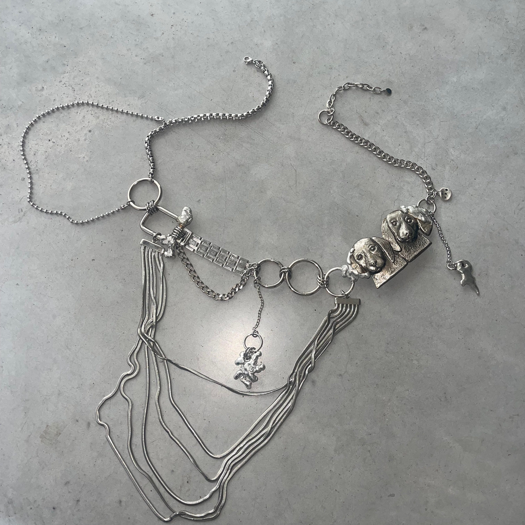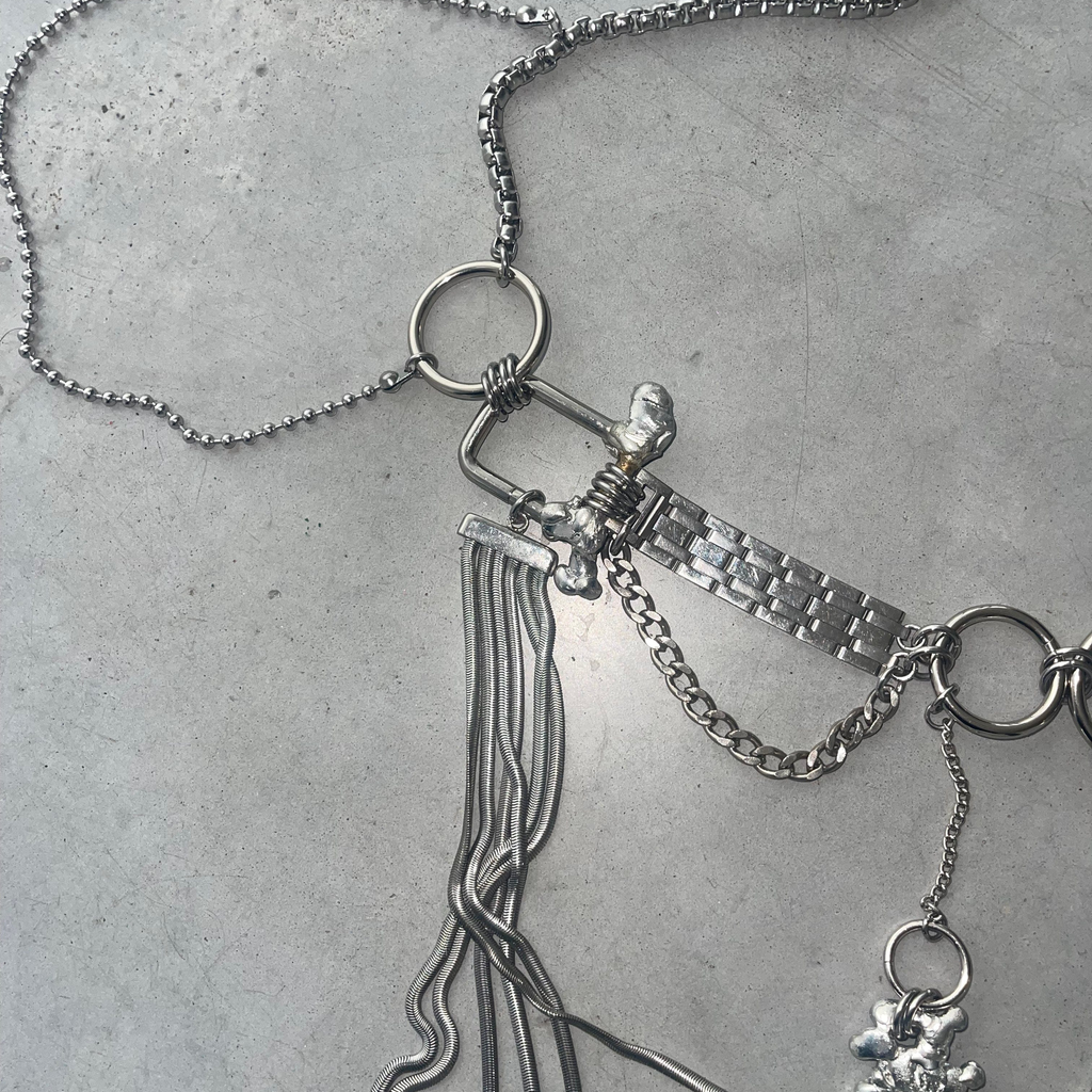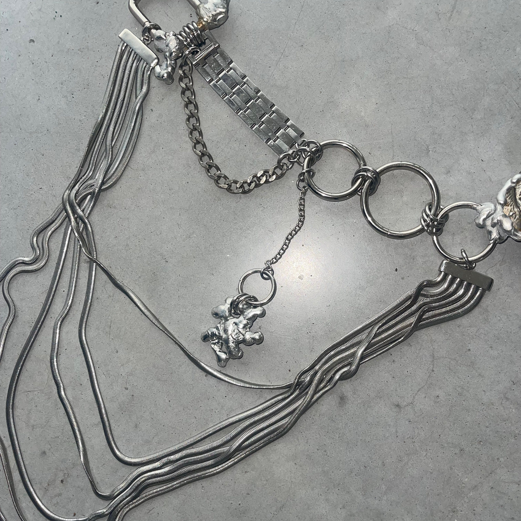 Echo Shawna pieces are the visualisation of the restless mind of designer Deborah Bloemen. Created in Antwerp with 80% recycled material, each element of Echo Shawna pieces is carefully collected based on its aesthetic value. The pieces are born not out of a design, but out of the inspiration of the collected objects. The brand is a tribute to Deborah’s parents who were both blacksmiths in the 70s. Every piece is unique, handmade and created with a lot of love.