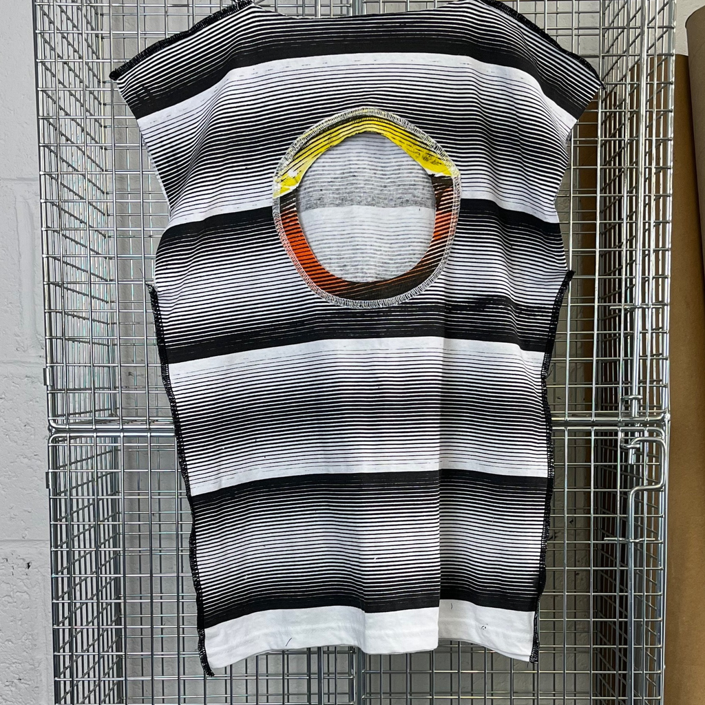 Recently Graduated from Central Saint Martins, Pip Paz-Howlett is in the early stage of setting up his brand, creating one of a kind pieces through upcycling, repurposing and silk screen printing/fabric manipulation. Pip's work is a saturated and sexual exploration of menswear referencing queer music and culture, vintage gay porn and psychedelic induced hedonism.