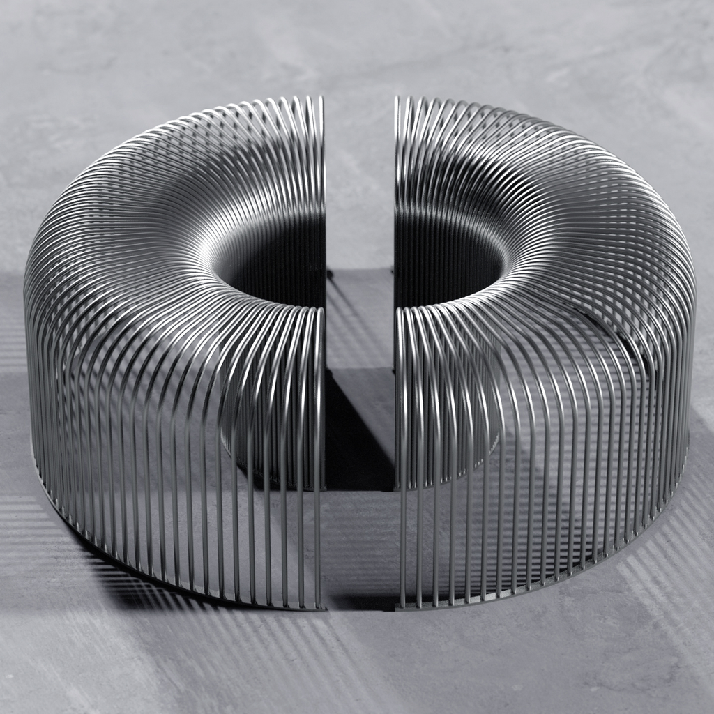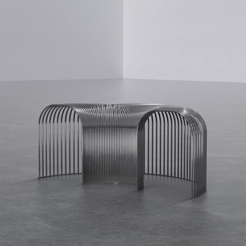 SS-A-180 can easily transform into a full metal circle when combined with another piece. Four times the stool in size, it offers more seating and can also be used as a bigger side table. The semicircle of the bench stands perfectly against any wall, and works just as well in the middle of a room.