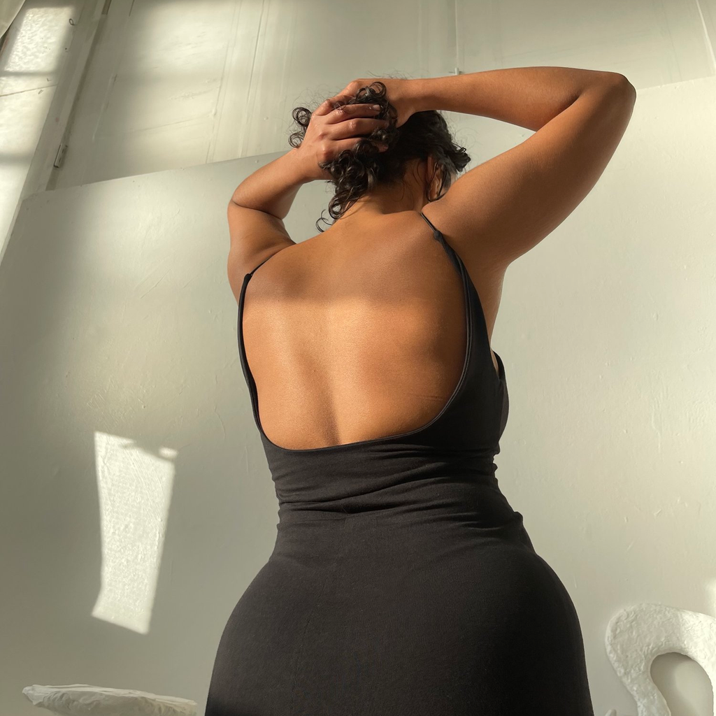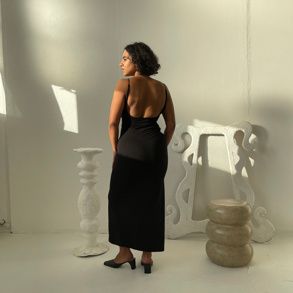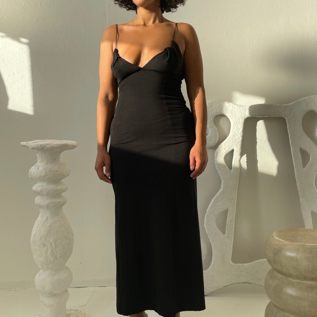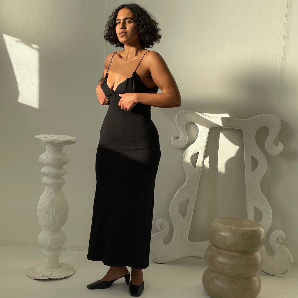 Slip Dress made with a soft, light to medium weight cotton jersey. This dress offers proper chest support with an empire seam waist, panelled with princess seams along the length providing a more flattering figure along a side slit. Made with 100% cotton jersey