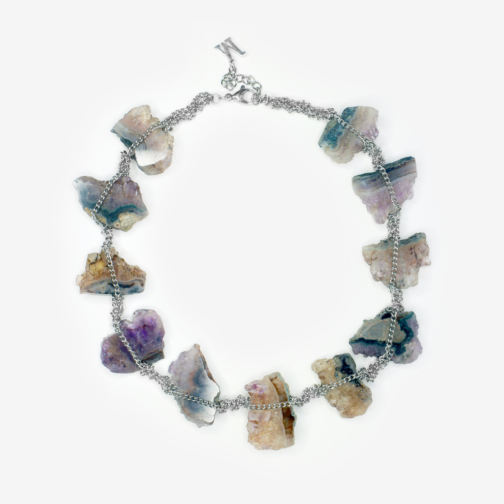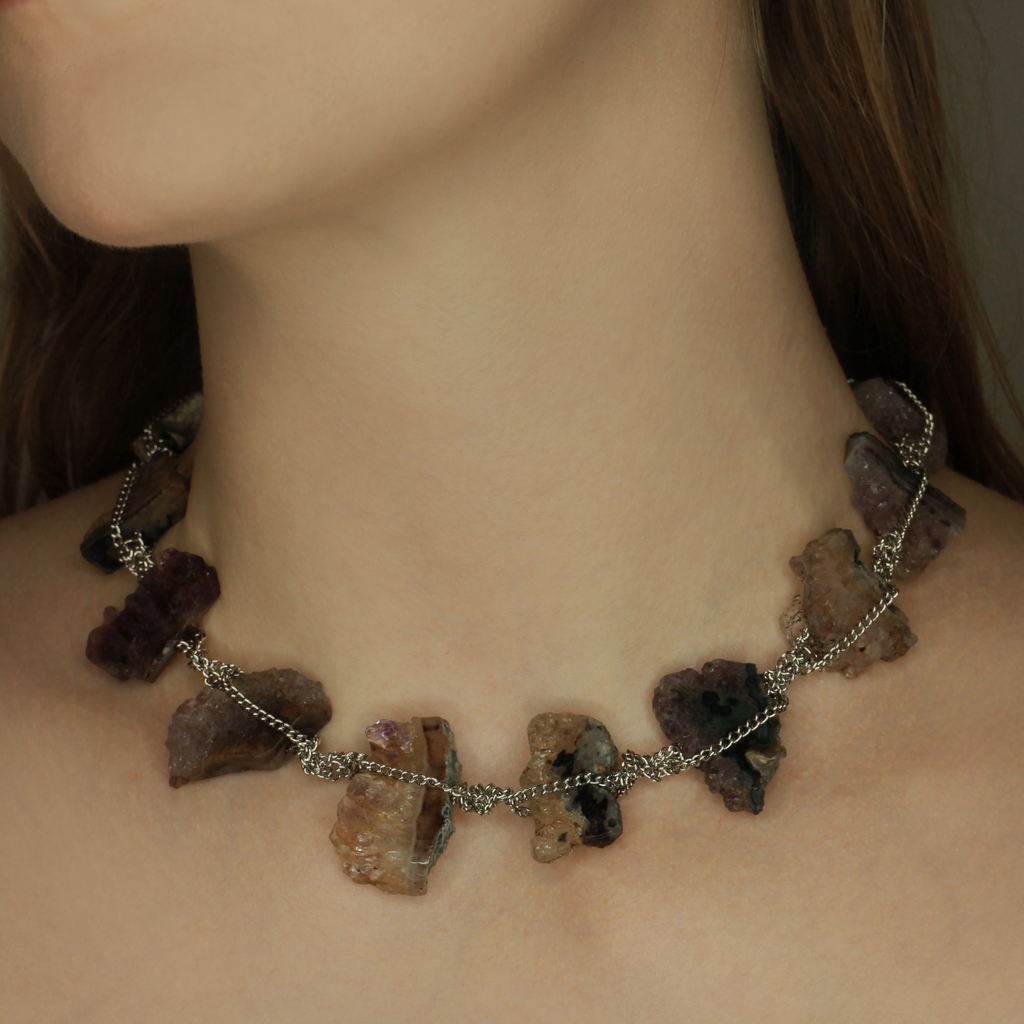 Stainless steel, natural amethyst stonePlease note that necklaces may vary from the photograph due to the nature of the natural stones