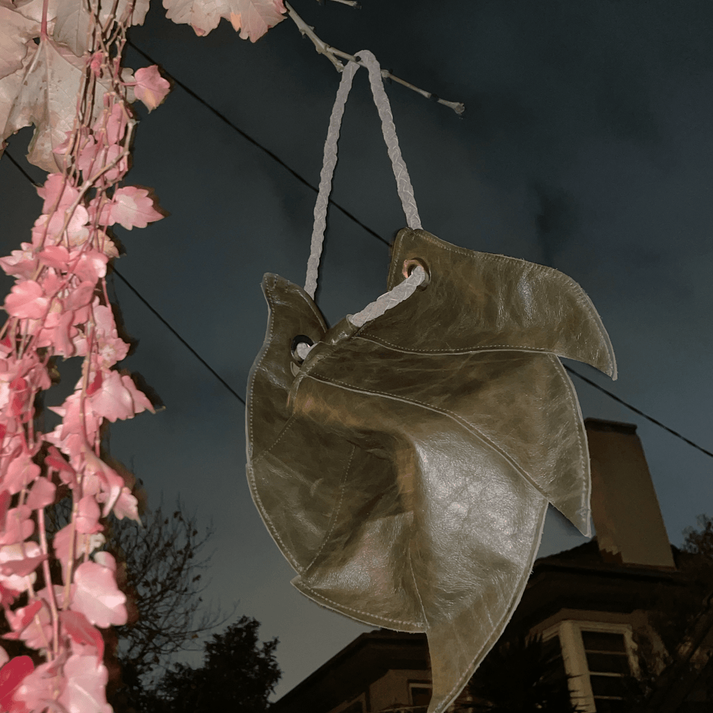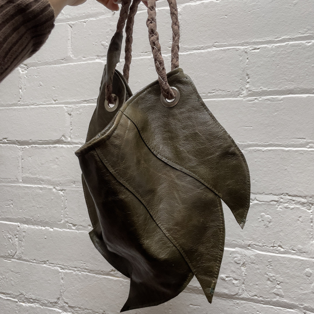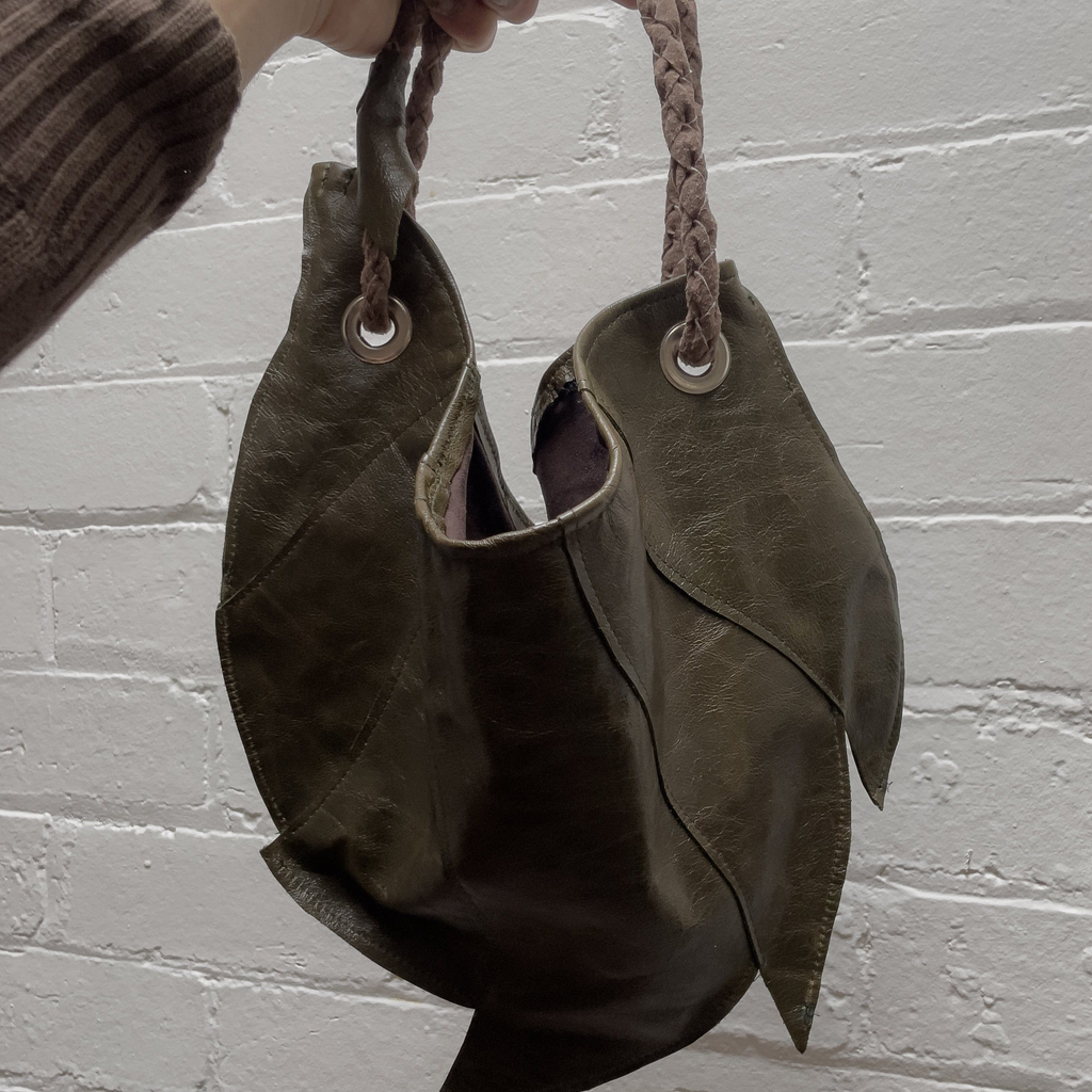Leather ammonite/armour inspired bag made from locally sourced scrap leather
