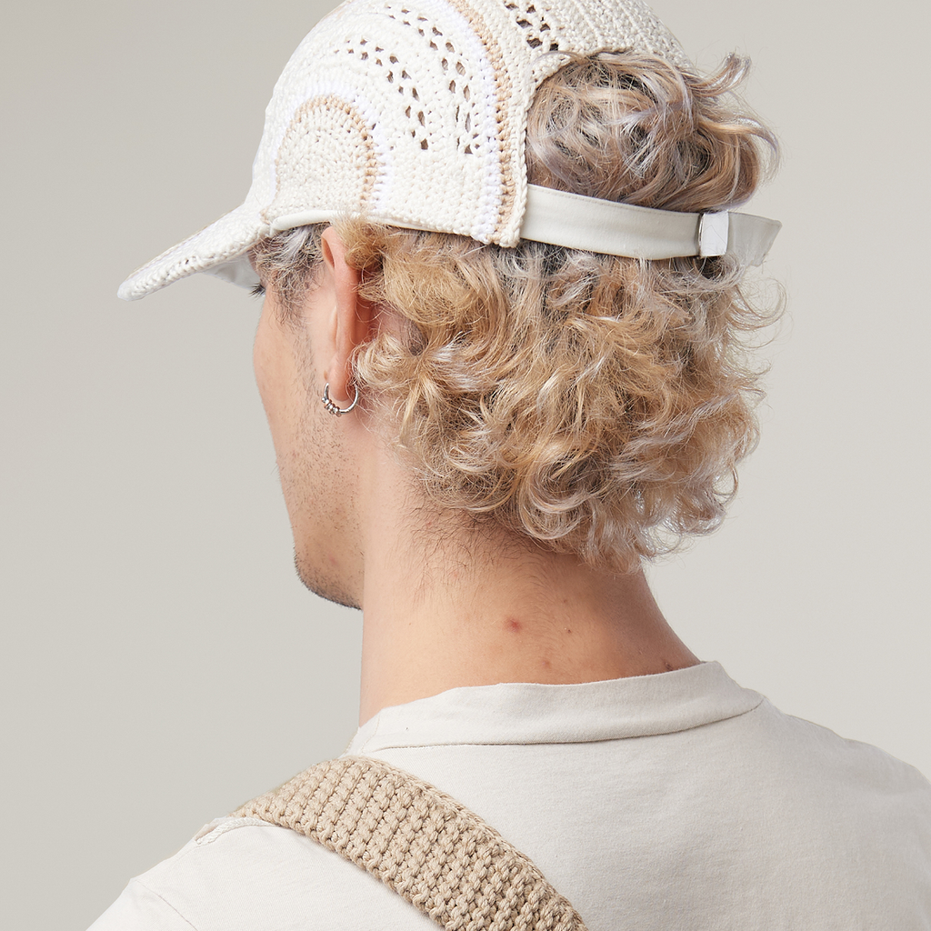 Handmade crochet baseball cap. Fit is adjustable on the back with a locker.
