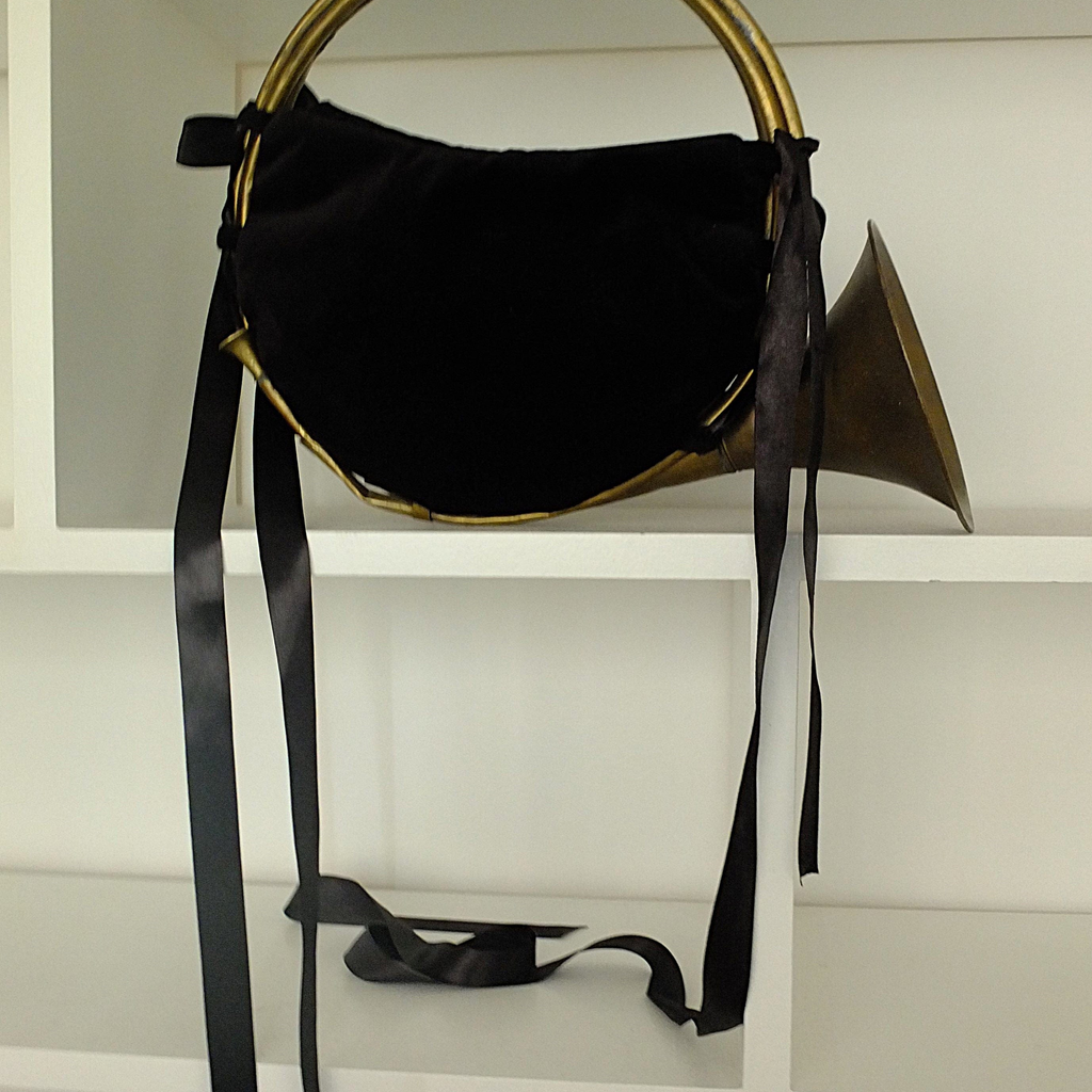 Material: antique horn, 100% cotton velvet, atlas ribbons