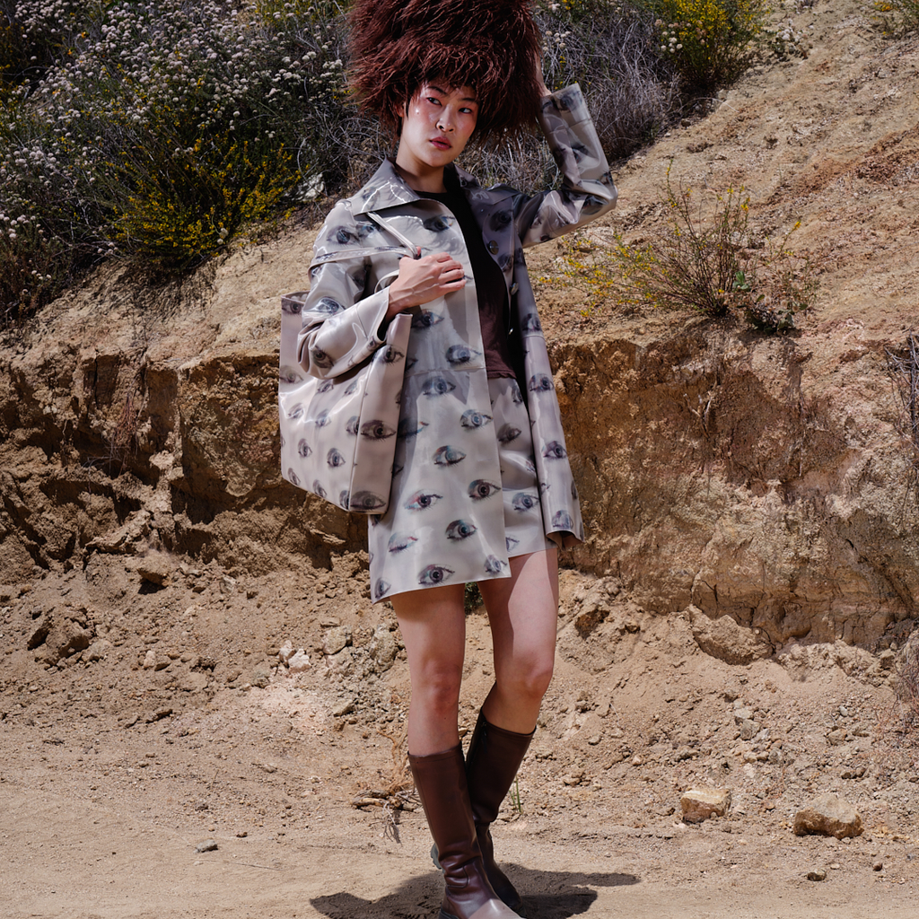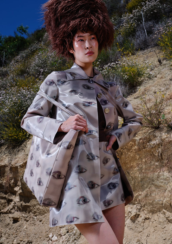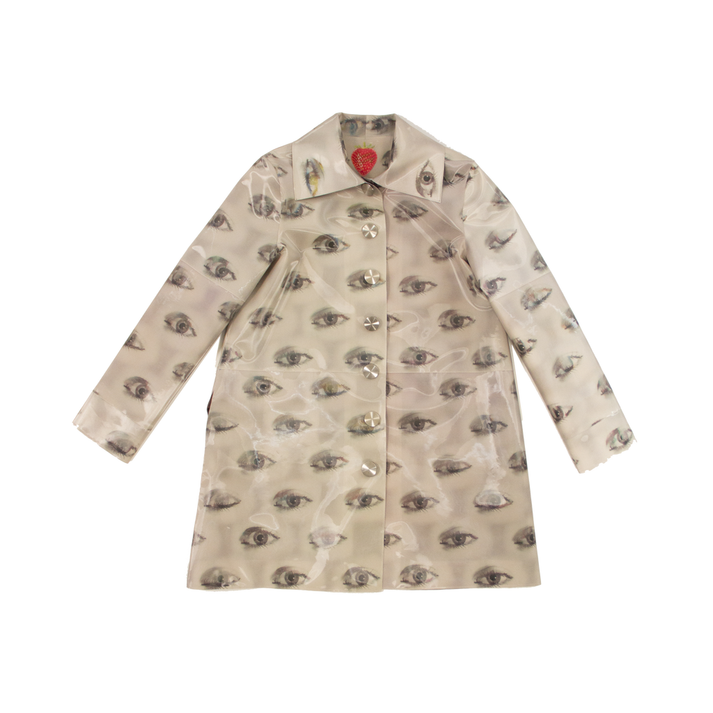 Animated Beige Blinking Eye Pattern Coat by Leeann Huang