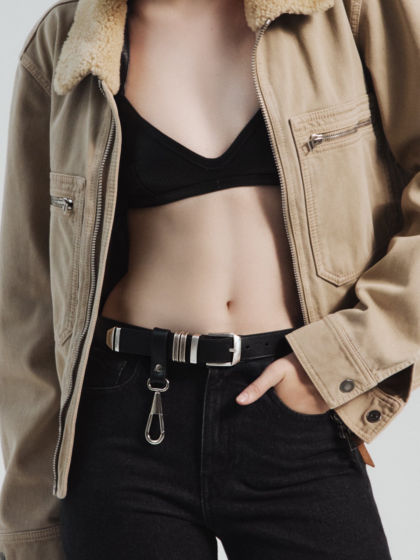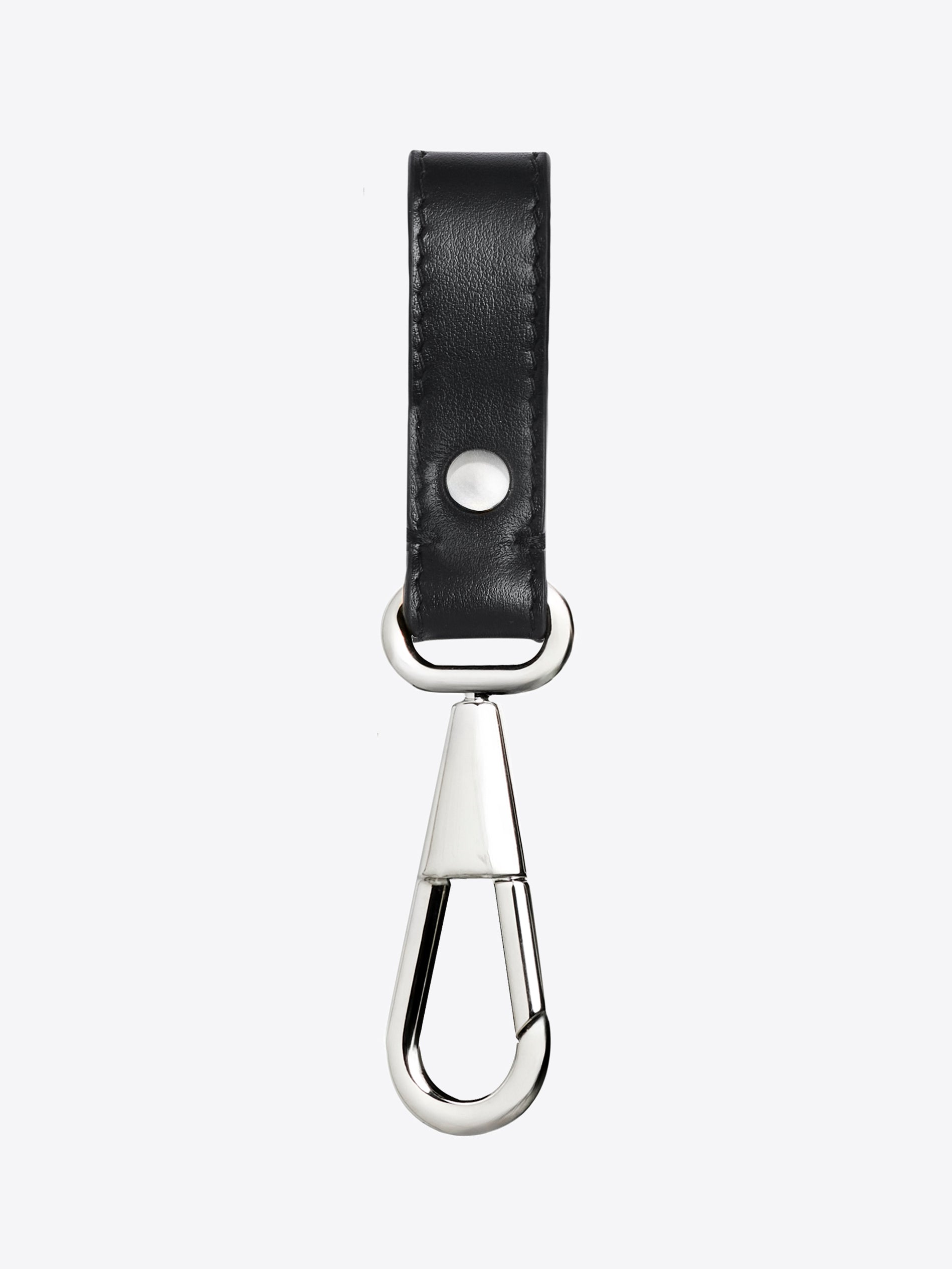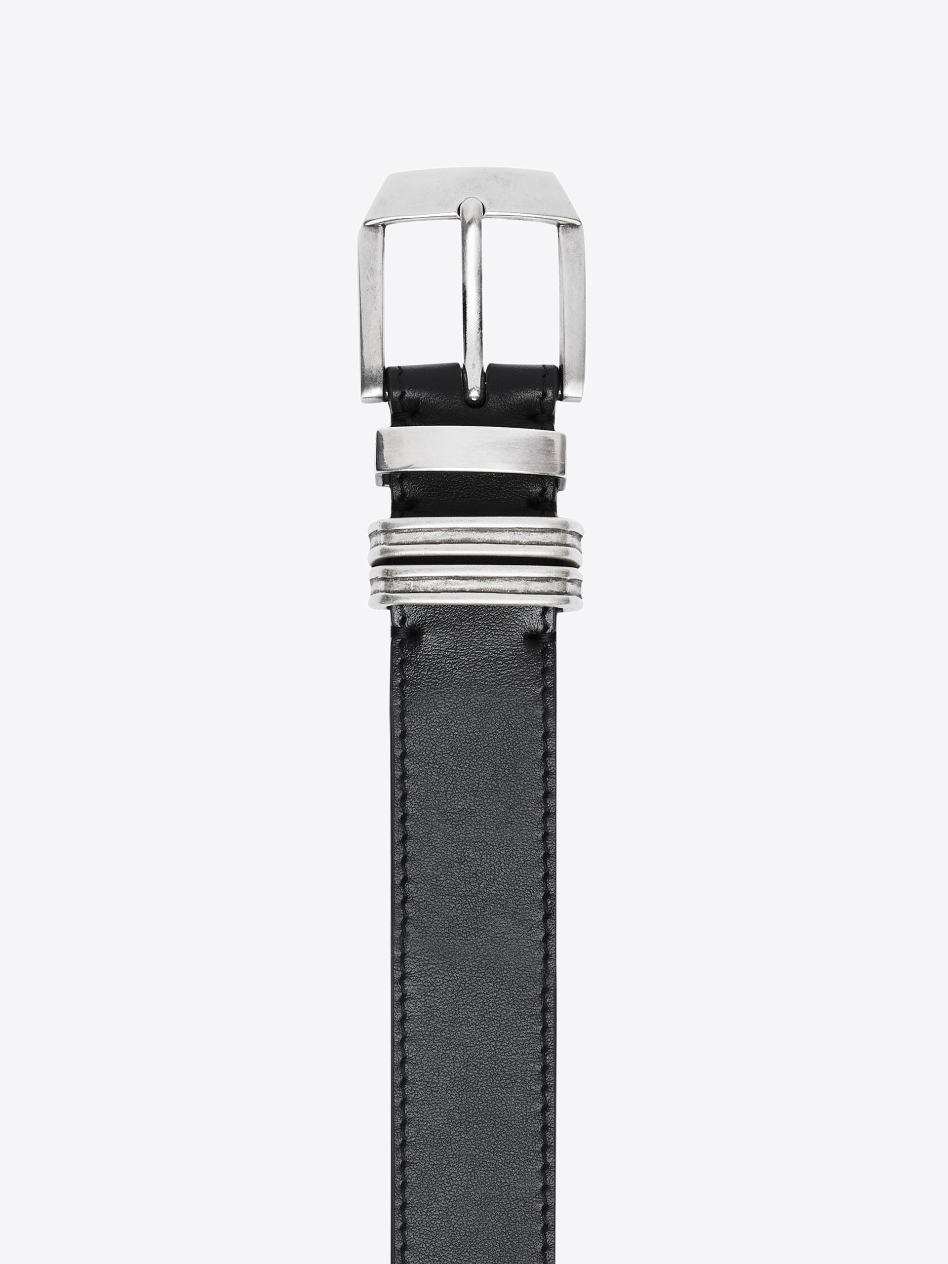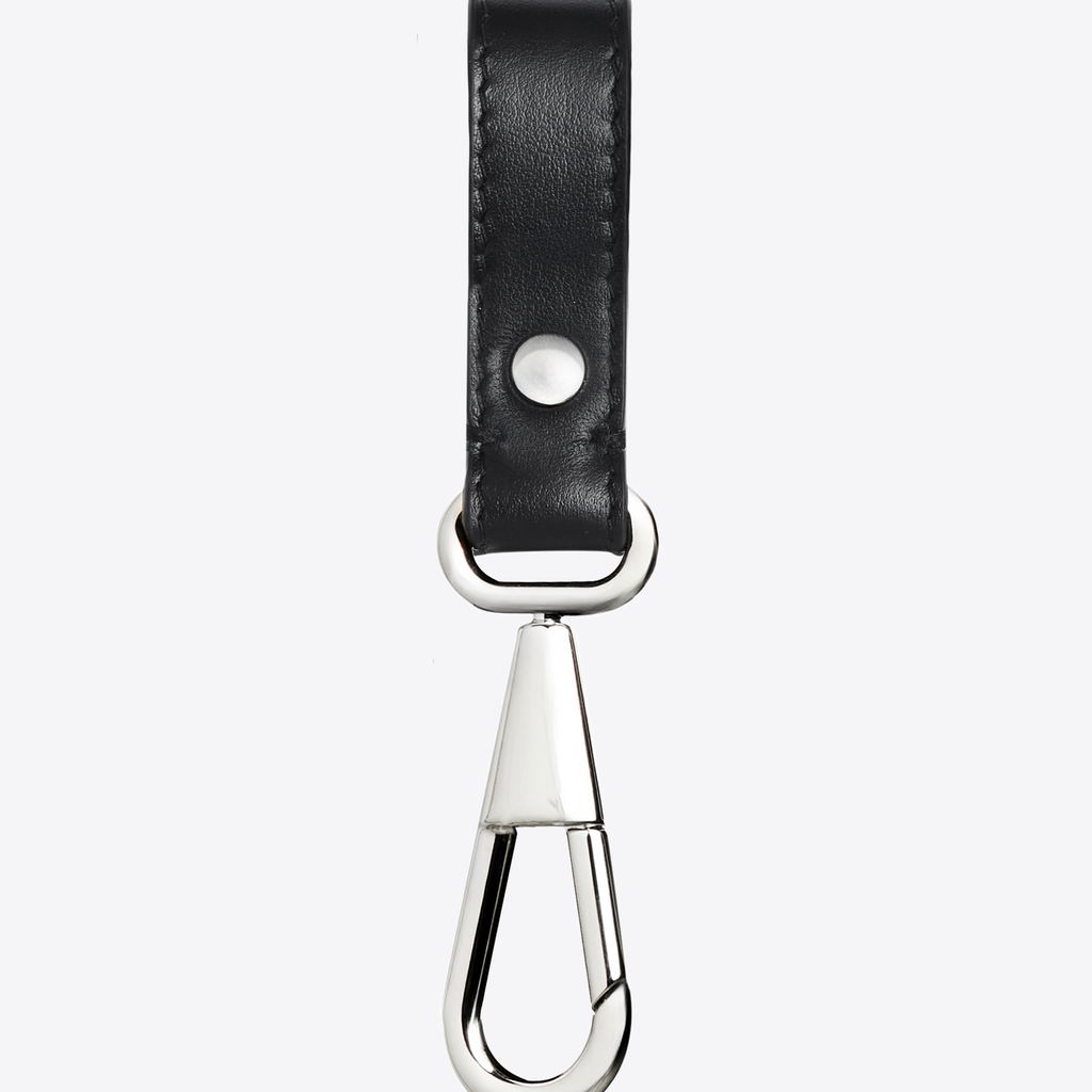 CALFSKIN BELT WITH SILVER-TONE BUCKLE SET, CARVED LOOPS AND REMOVABLE STRAP FEATURING A SILVER SNAP HOOK. ALSO AVAILABLE IN VEGAN LEATHER.