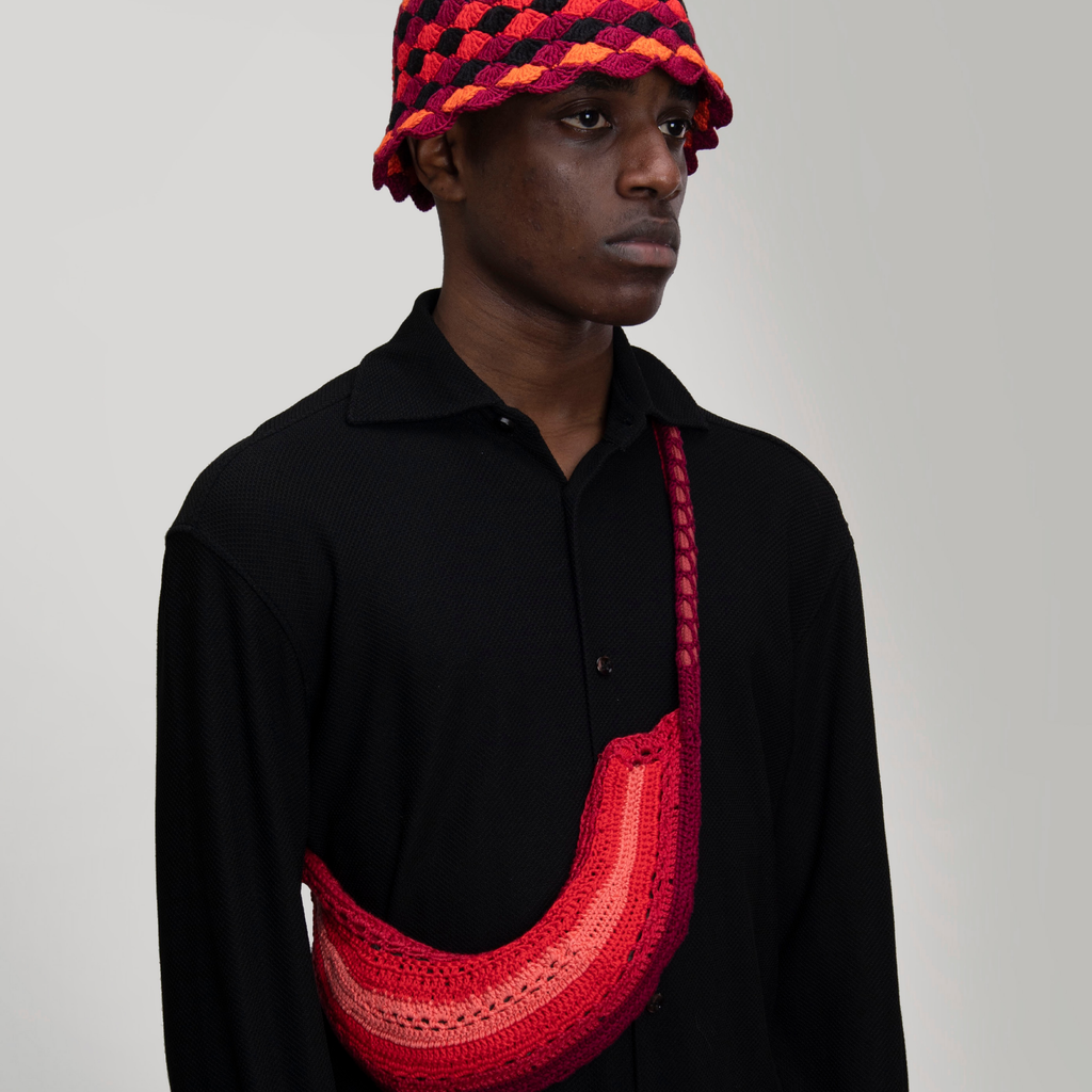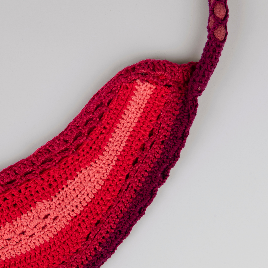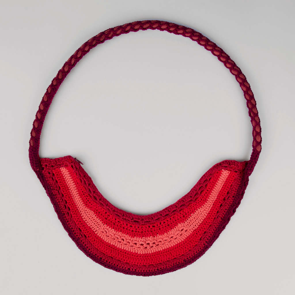 Handmade crochet arc shaped bag in color scale.