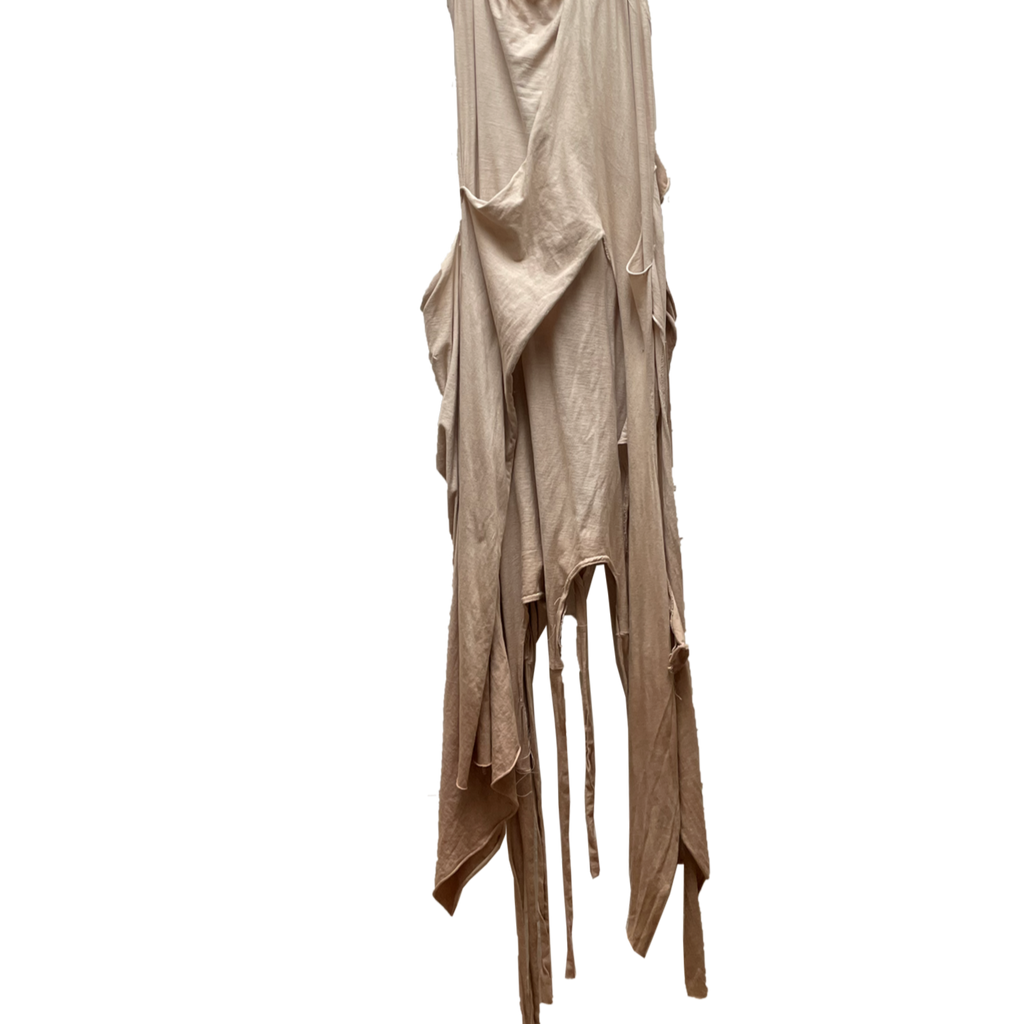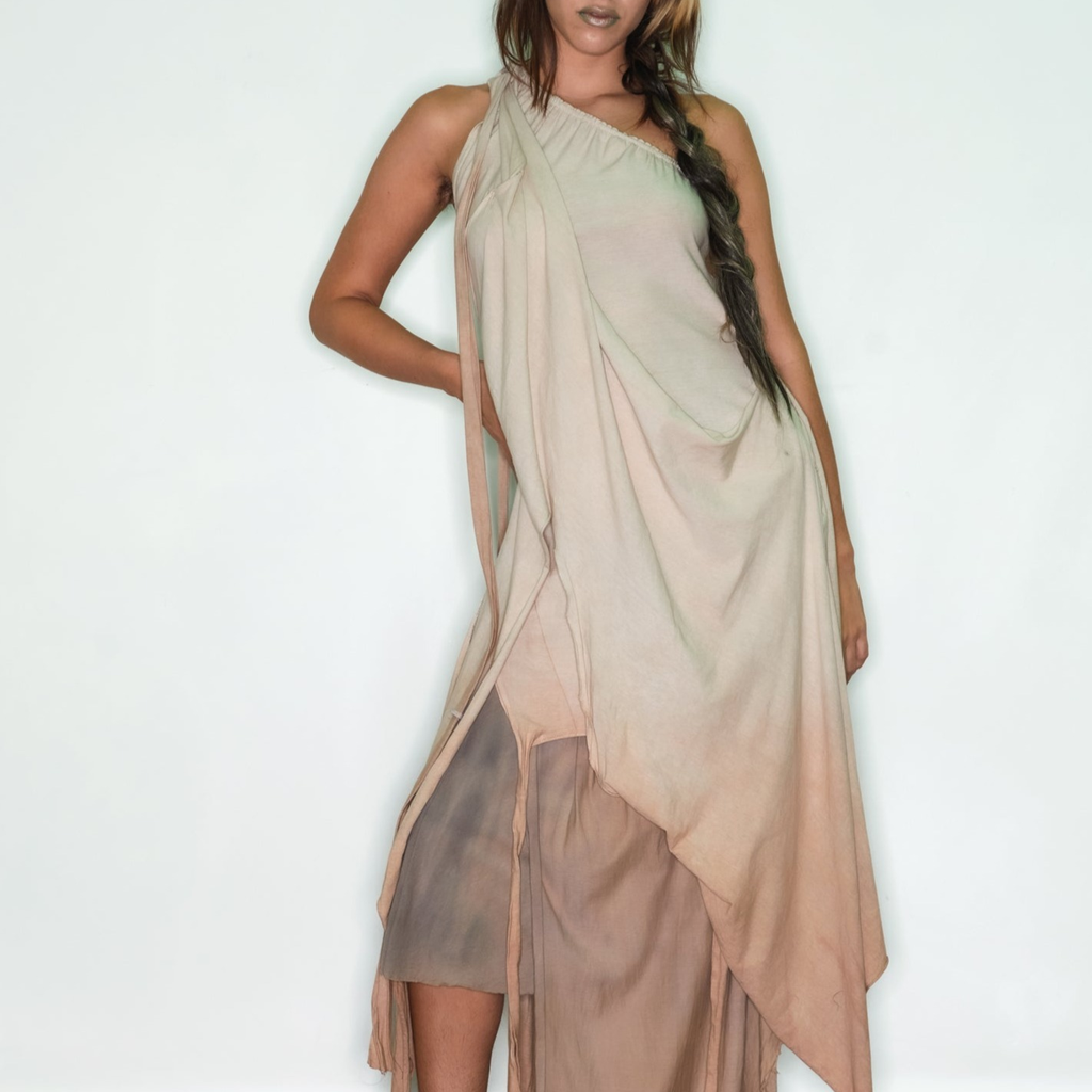 Draped asymmetrical strappy dress, made with zero fabric waste.