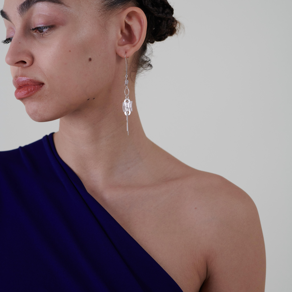 . Back draped of a friendship knot holding a ring allowing the adjustment of the top with the left side panel