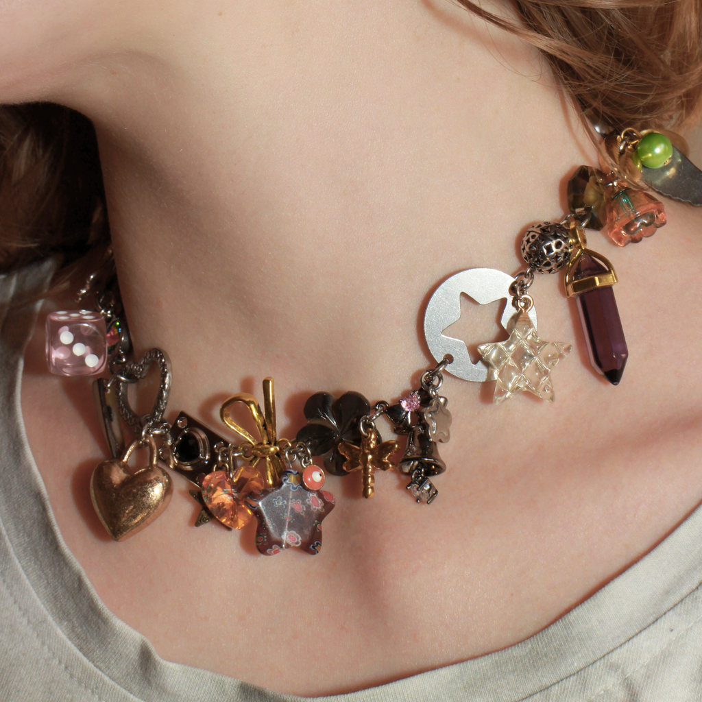 Marland Backus is Tokyo-based accessory designer from Brooklyn, NY,  where she studied industrial design at Pratt Institute. Many of her designs focus on sustainability and recycling through the reuse and up-cycling of vintage parts, to create hyper-junkbox charm necklaces, each possessing their own nostalgic and kitschy personalities.