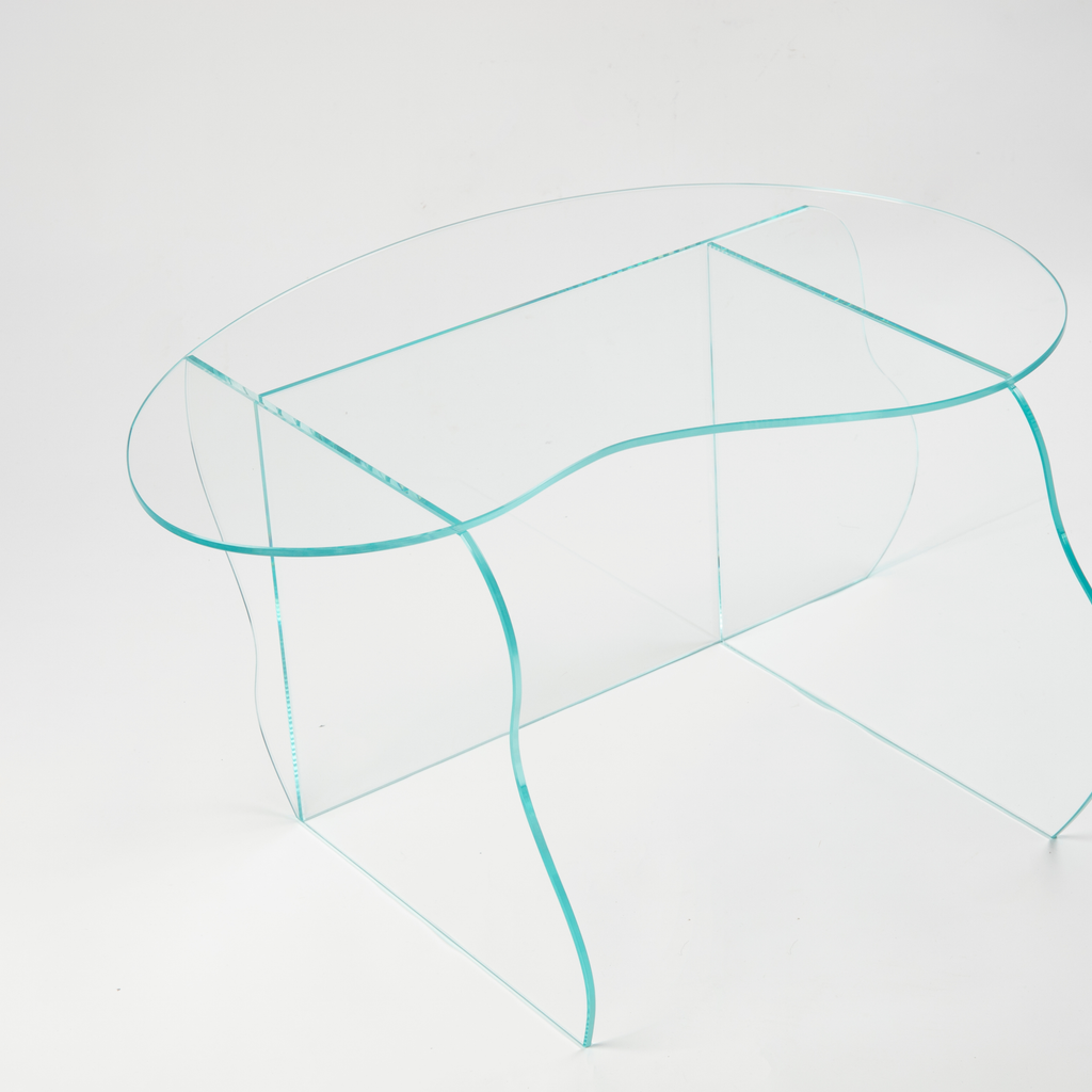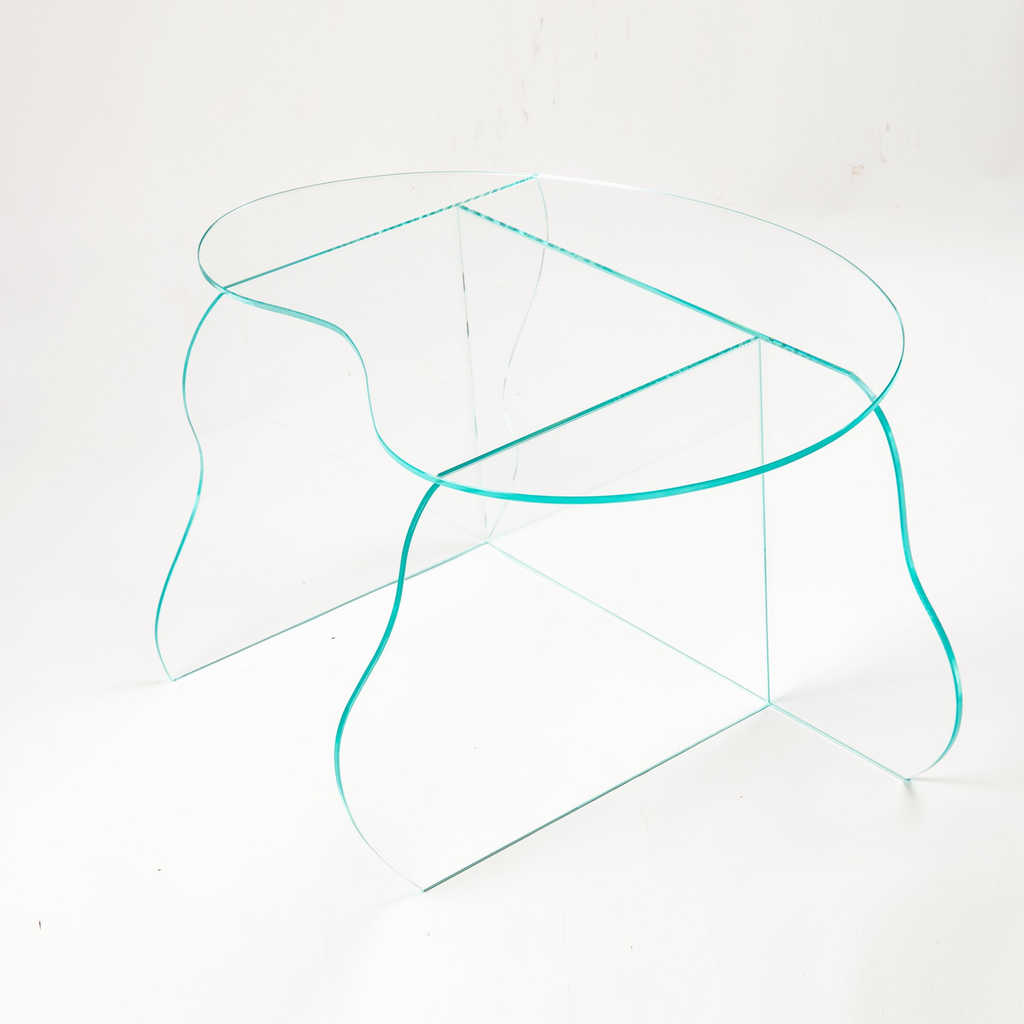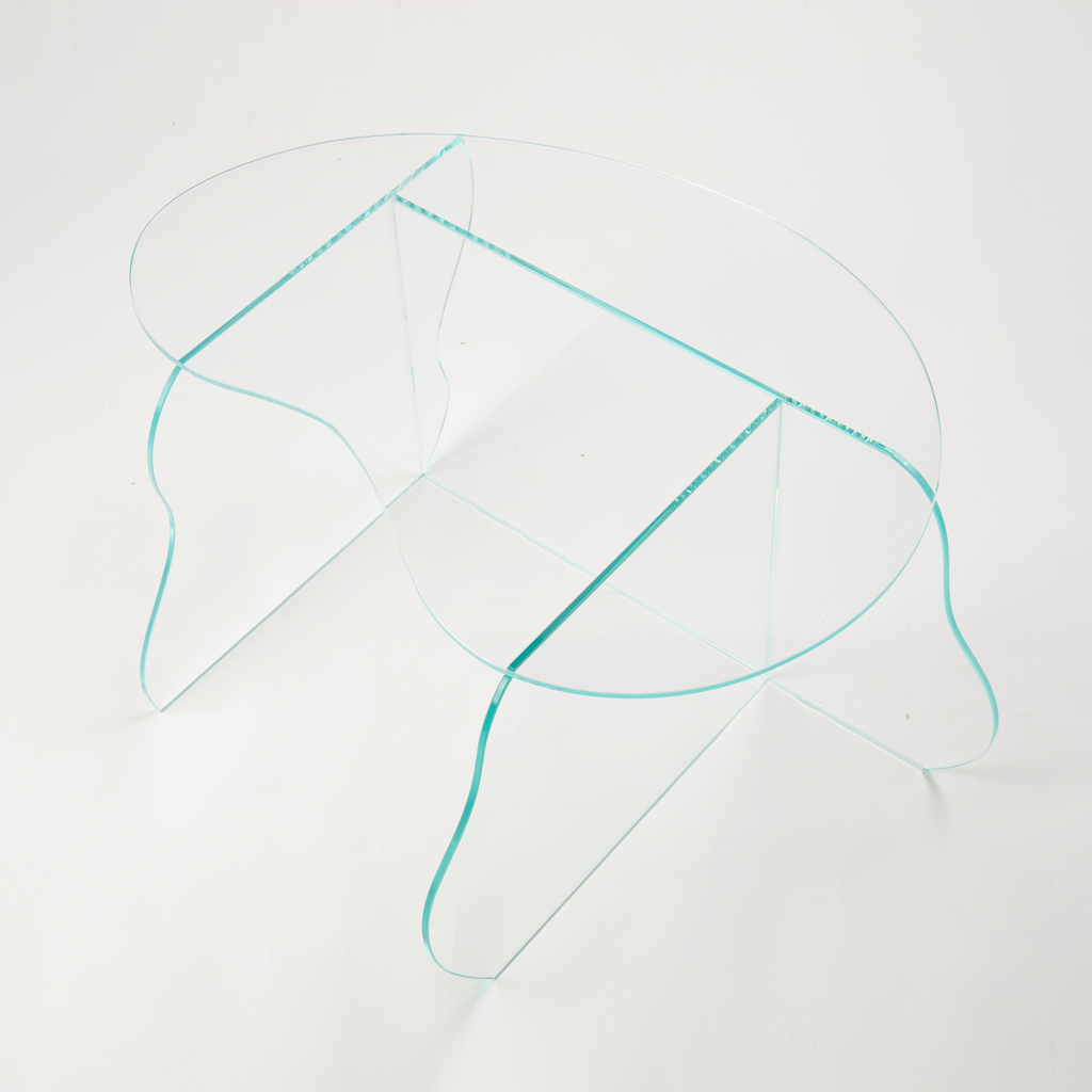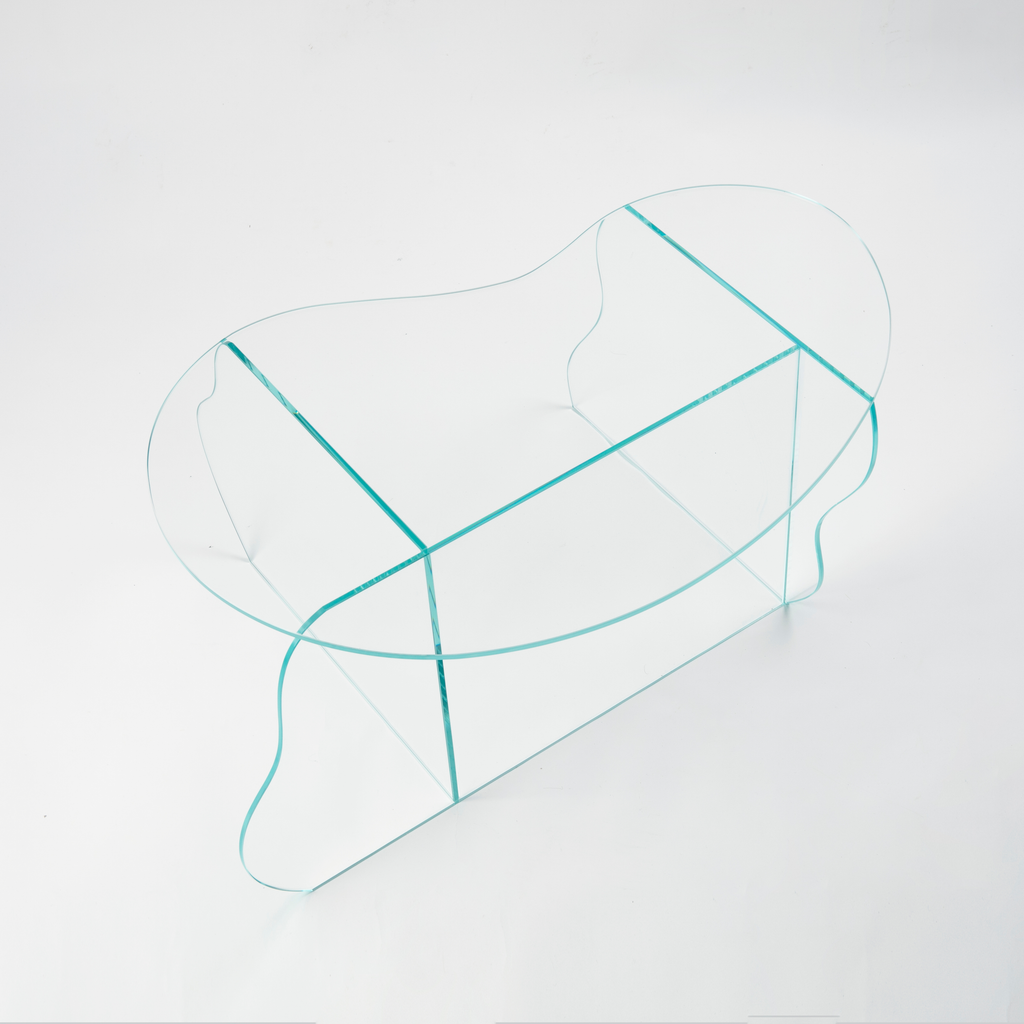 Aurora clear glass coffee table by Studio Chacha.