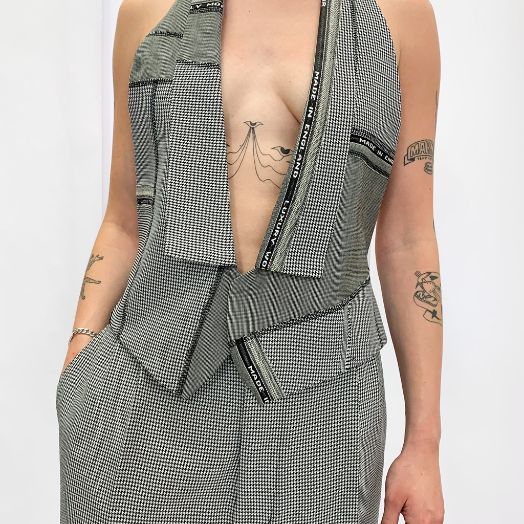 This product is made by hand, using wool and polyester houndstooth off-cuts and scraps from our inhouse production, imperfections are expected as a sign of unique craftsmanship