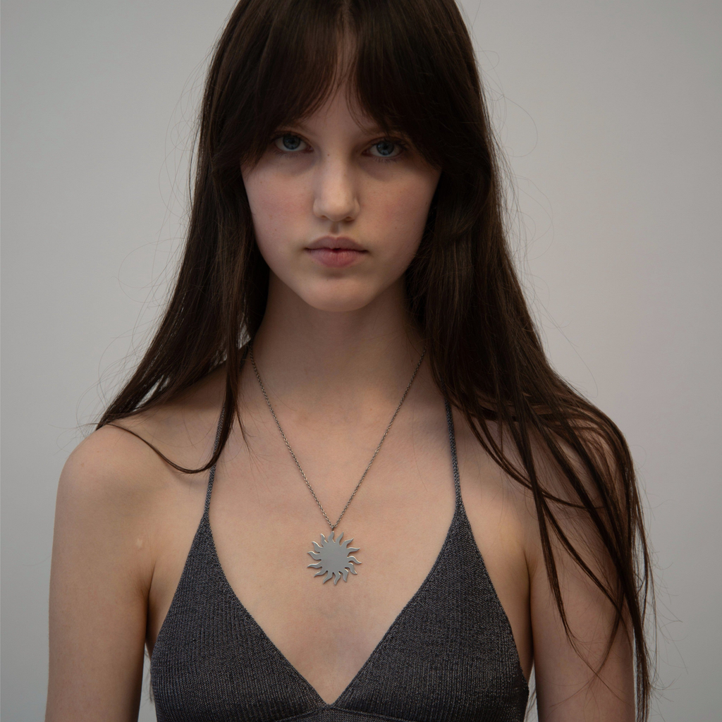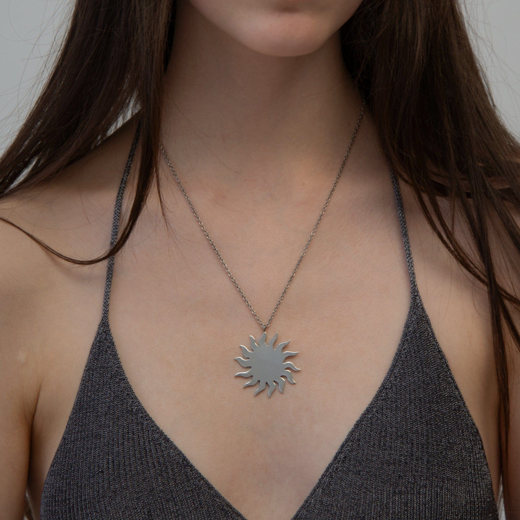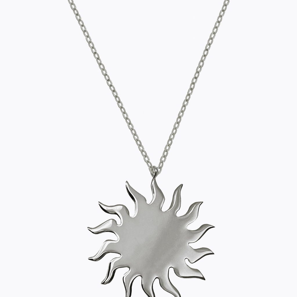Rhodium Coloured Brass Sun Pendant On Cable Chain