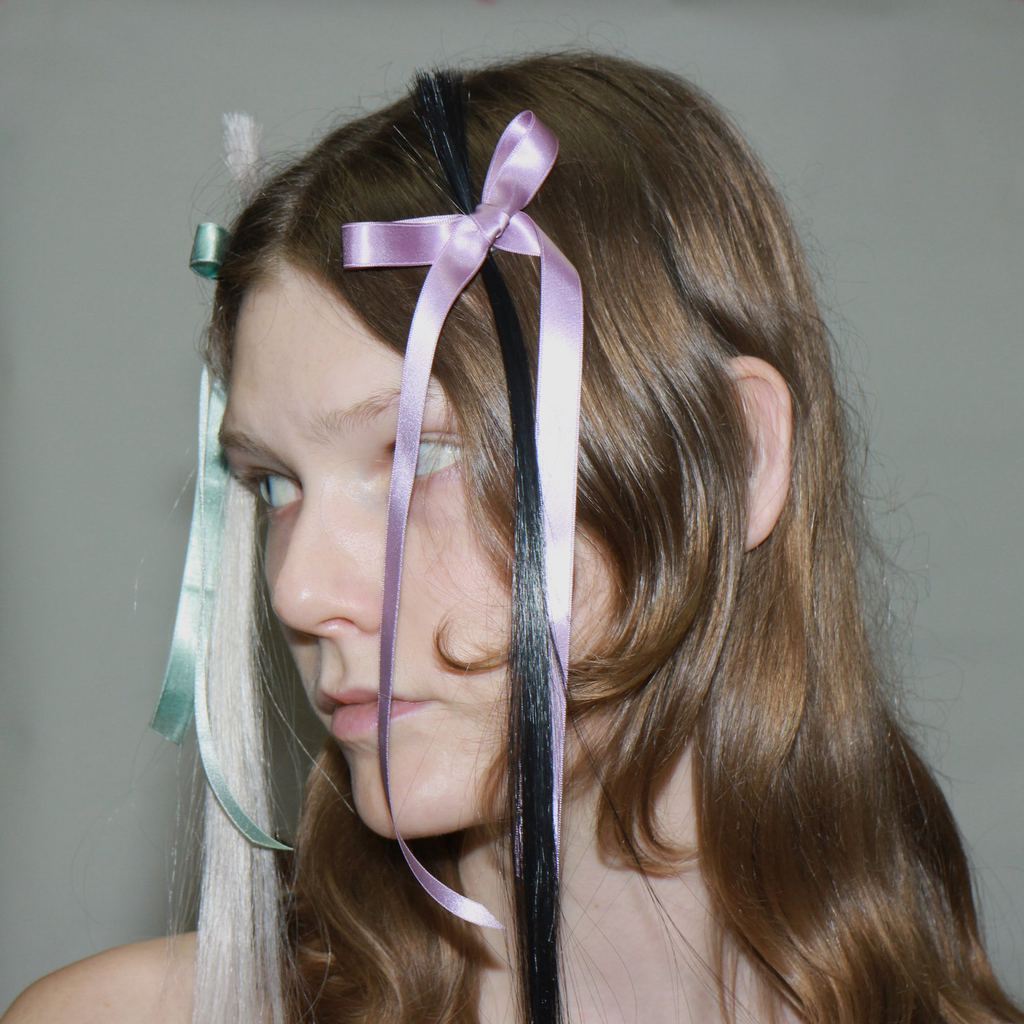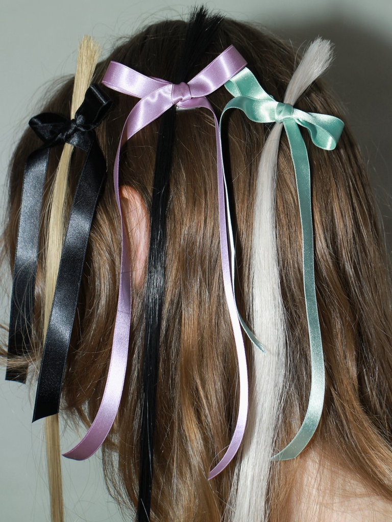 Choice of four colors of satin ribbon and four colors of synthetic hair
