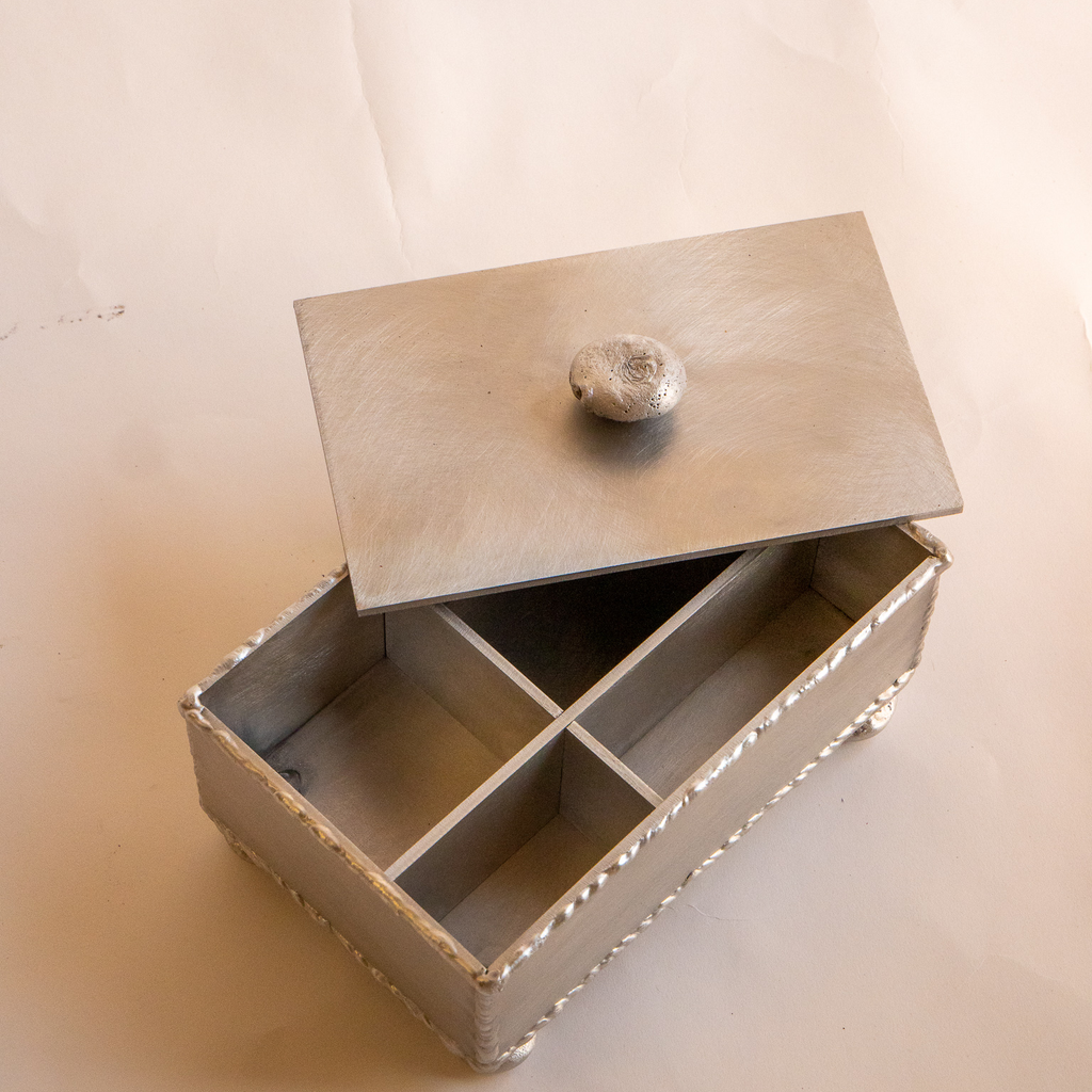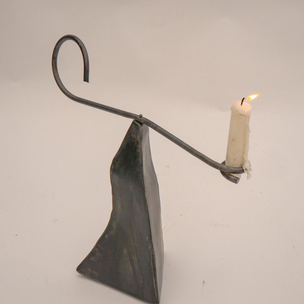 A welded Steel Candle holder. Balancing Act is a collection of two lamps and a candle holder. Inspired by Calder’s Circus, it captures a sense of naive joy and playful freedom, inviting interaction and spontaneity through balanced forms and whimsical design.