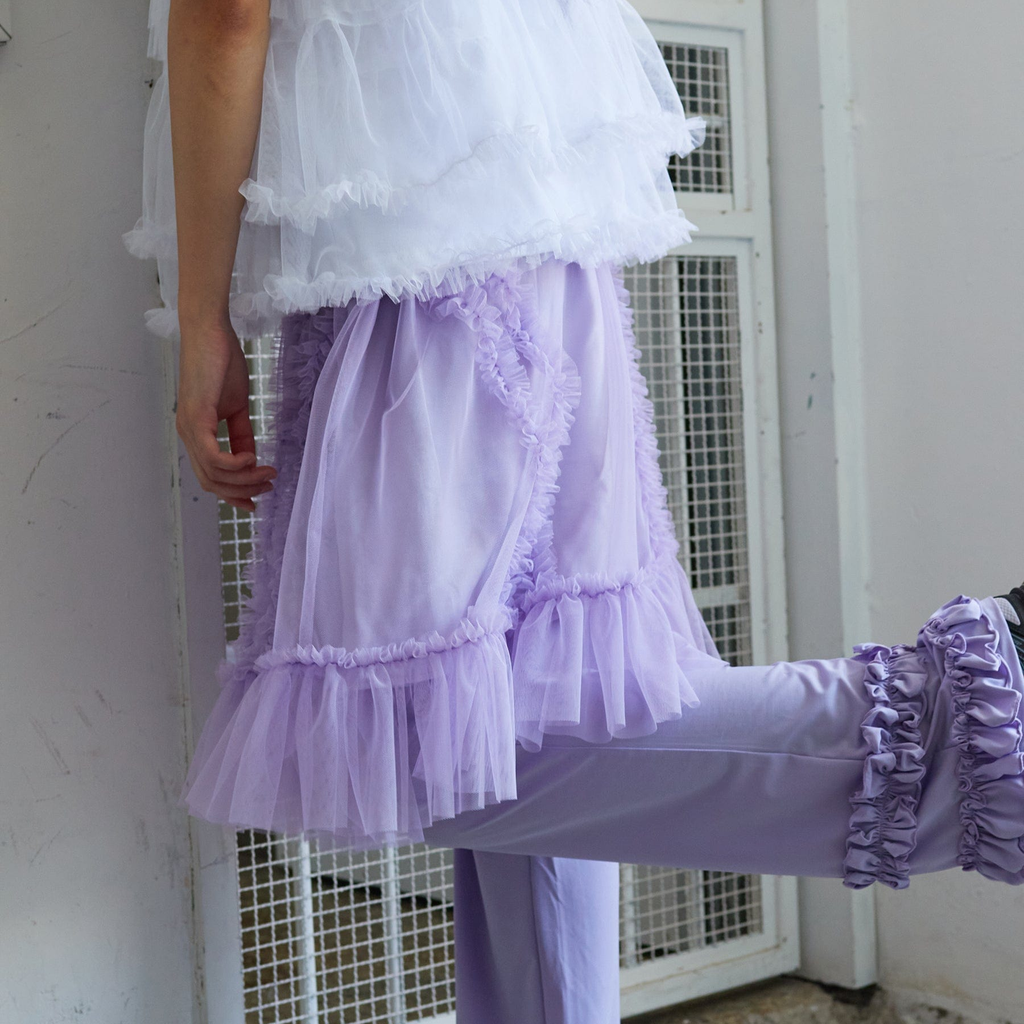 - Two rows of frills are arranged on each side to create a voluminous silhouette.One size (fits like a S-M)