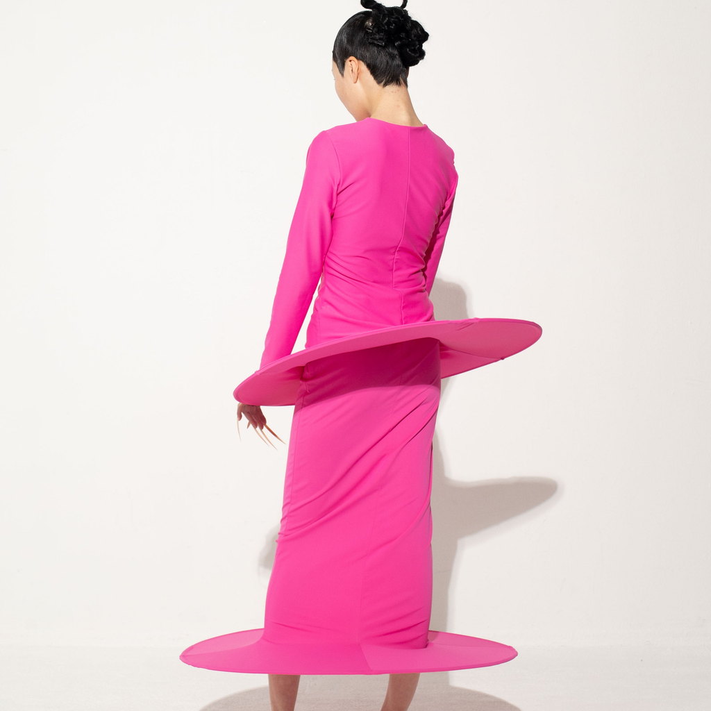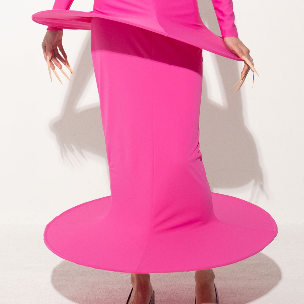 Fuscia pink tight skirt made of elastic jersey fabric.