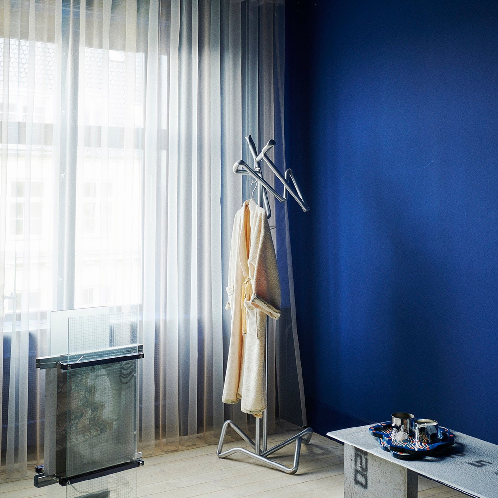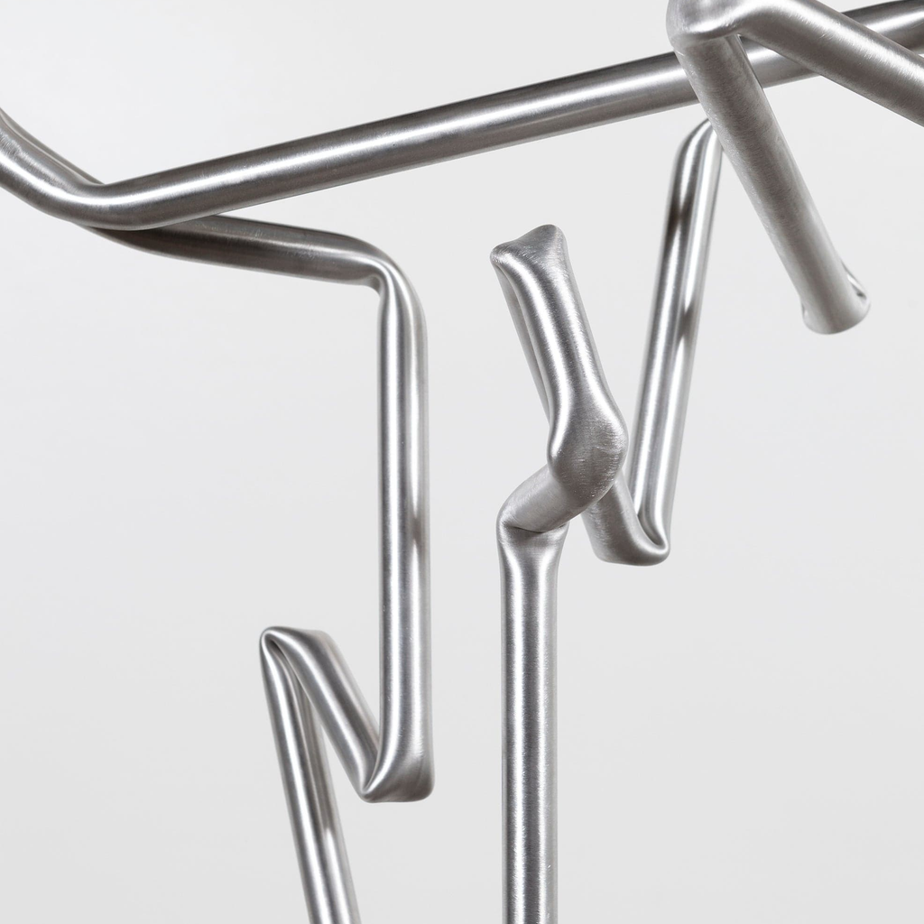 Our coat rack is made of of approximately eight metres of aluminium tube, which is heated up and bent by hand according to our template. Always hand-made and always produced in Denmark. Because of its hand-made nature, there will be small variations in the shape of each item.