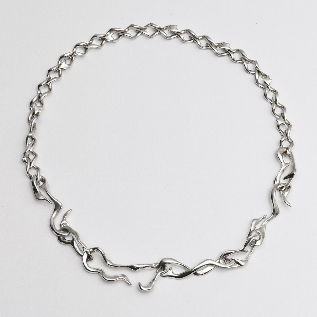 Endless loop chain made of indivudual unique solid silver links with a bespoke hook & clasp fastening. Two styles in one for versatile wear. Available in different lengths. Available in Rhodium plated brass or 925 Silver.