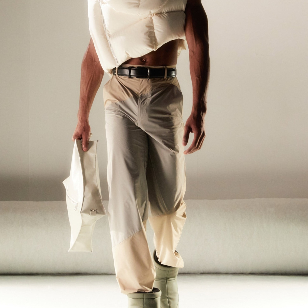 After graduating from Central Saint Martins and the Antwerp Royal Academy of Fine Arts, Izzy Du launched her brand in 2021. Izzy Du envisions a remarkable world where the inhabitants are transformed from the surrounding environment. Her work focuses on the external shape of garments and their internal structure, employing various materials to create a dimensional contrast between the garment and the negative space it creates on the body.
