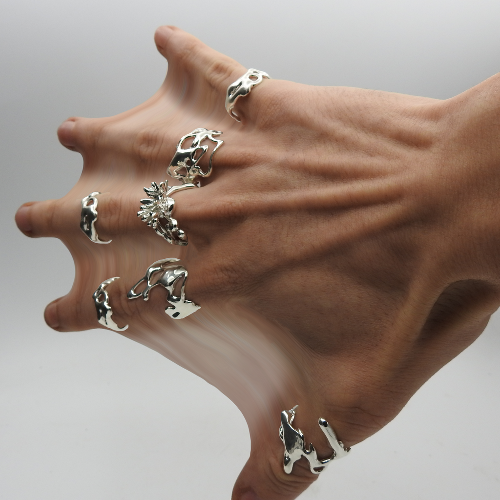 Founded by Elmo Mistiaen, Miosis Design is new Brussels-based jewellery label inspired by biomorphic forms and organic shapes. Elmo was always obsessed with insects and weird biological processes, and integrates this in his design process. Current silver designs feature thorns and liquid organic shapes that combine into unique unisex rings.