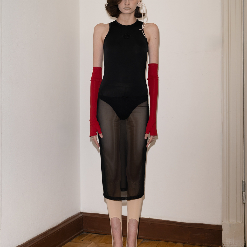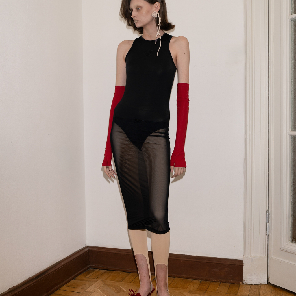 mesh tank top with raffia detail