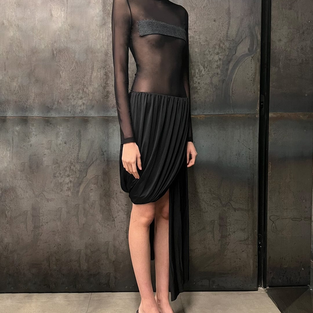 mesh dress with ruffle details