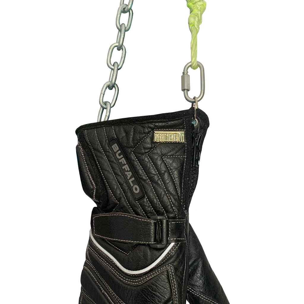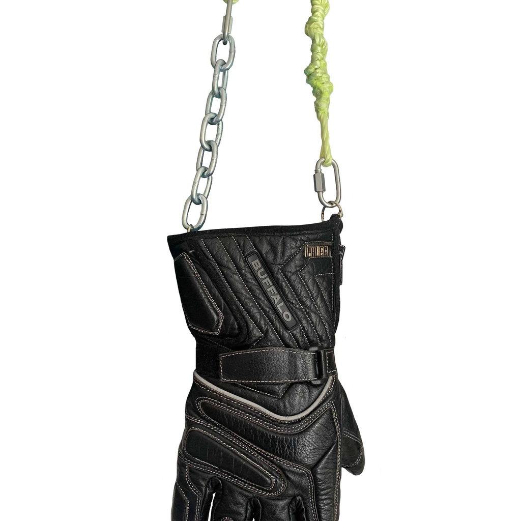 Phlegm is a London-based accessories brand by Phlegm Greene. Each creation, whether it be a bag or belt, features a repurposed glove. From football gloves to motorcycle gloves, boxing gloves to heat resistant gloves, Phlegm upcycles and transforms each glove into one of one pieces.
