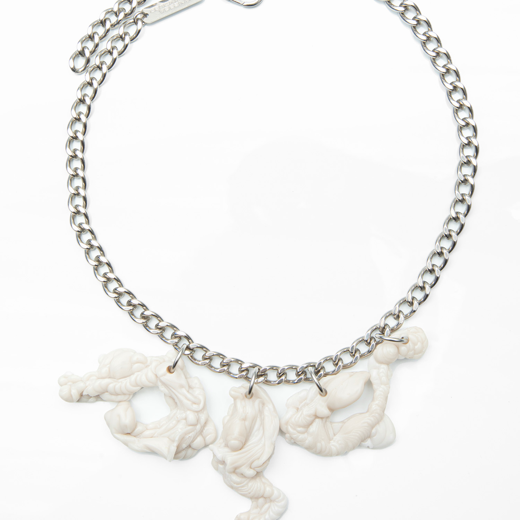 Silver plated chains, hooks and tag (made in Italy), bioresin shapes (handmade in Switzerland)