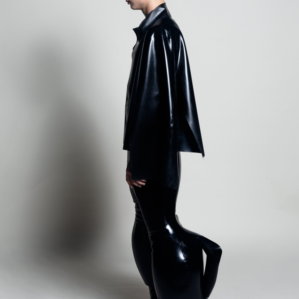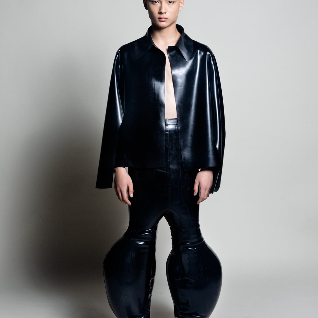 black latex deflated trousers